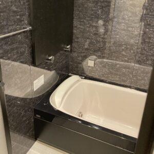 浴室は一日の疲れを癒すダークで落ち着いた雰囲気に。