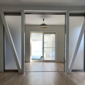 ふすまをアクリル系パネルの引き分け戸に取替えて、明るく広々とした空間を実現しました。