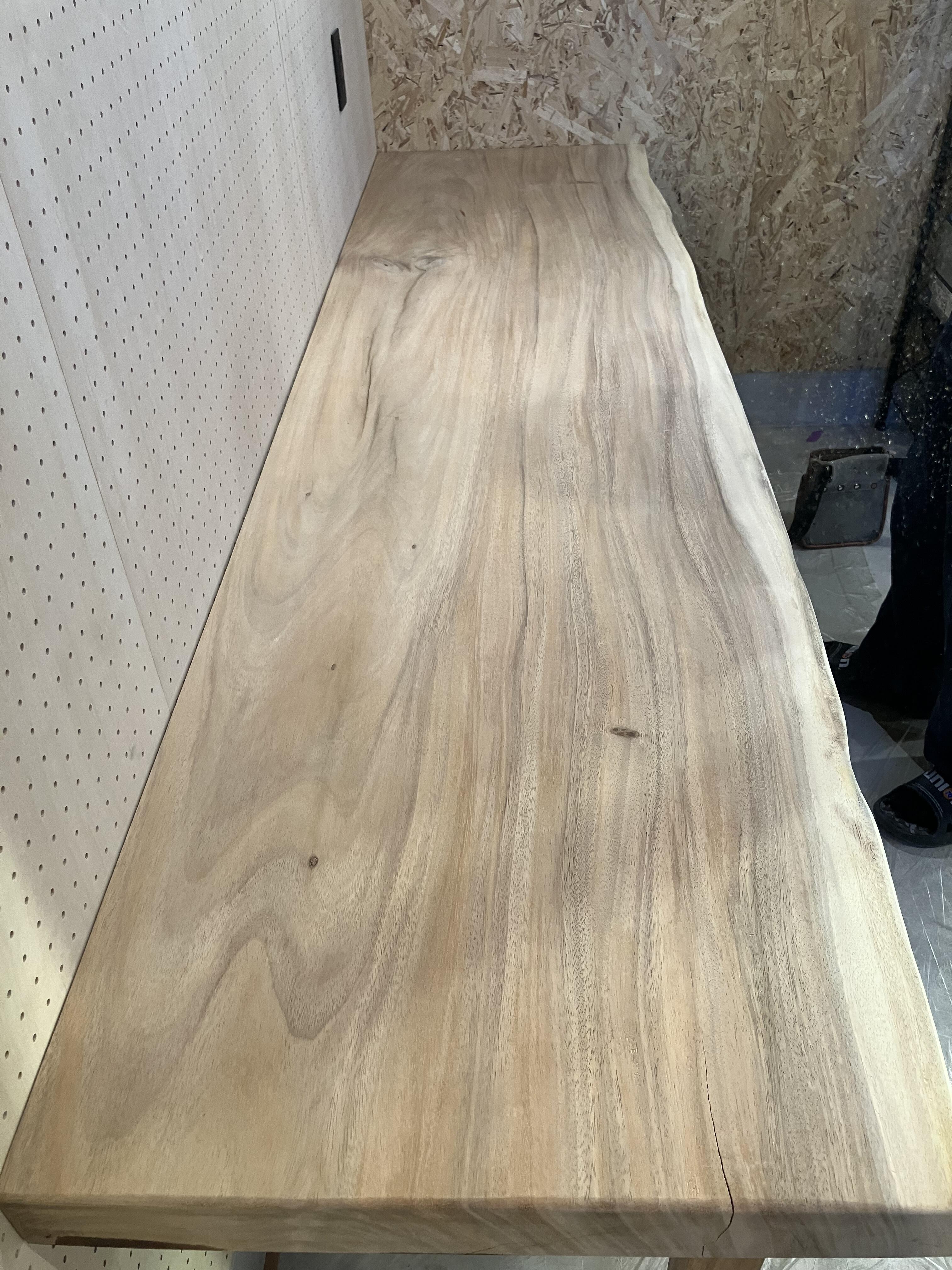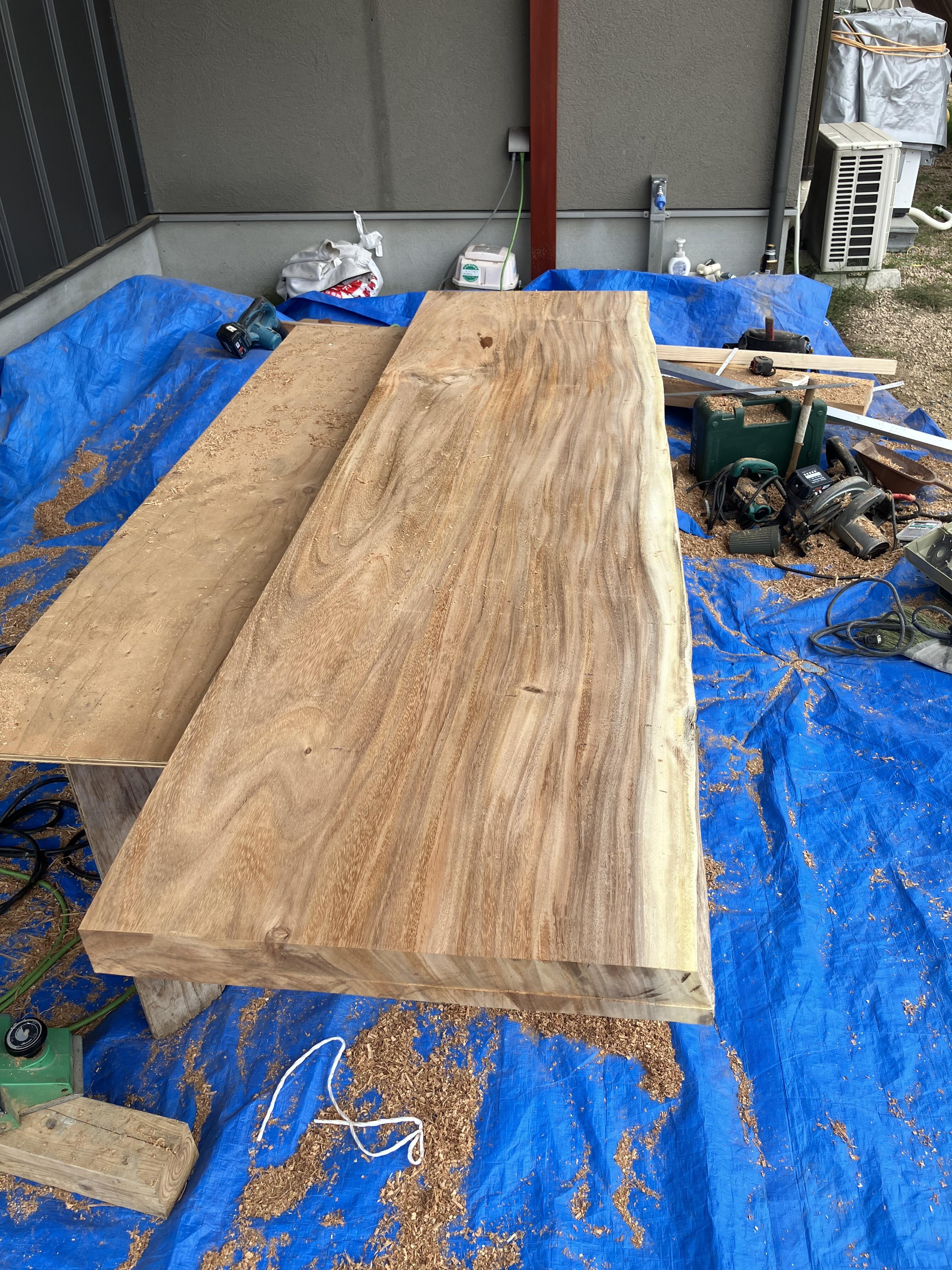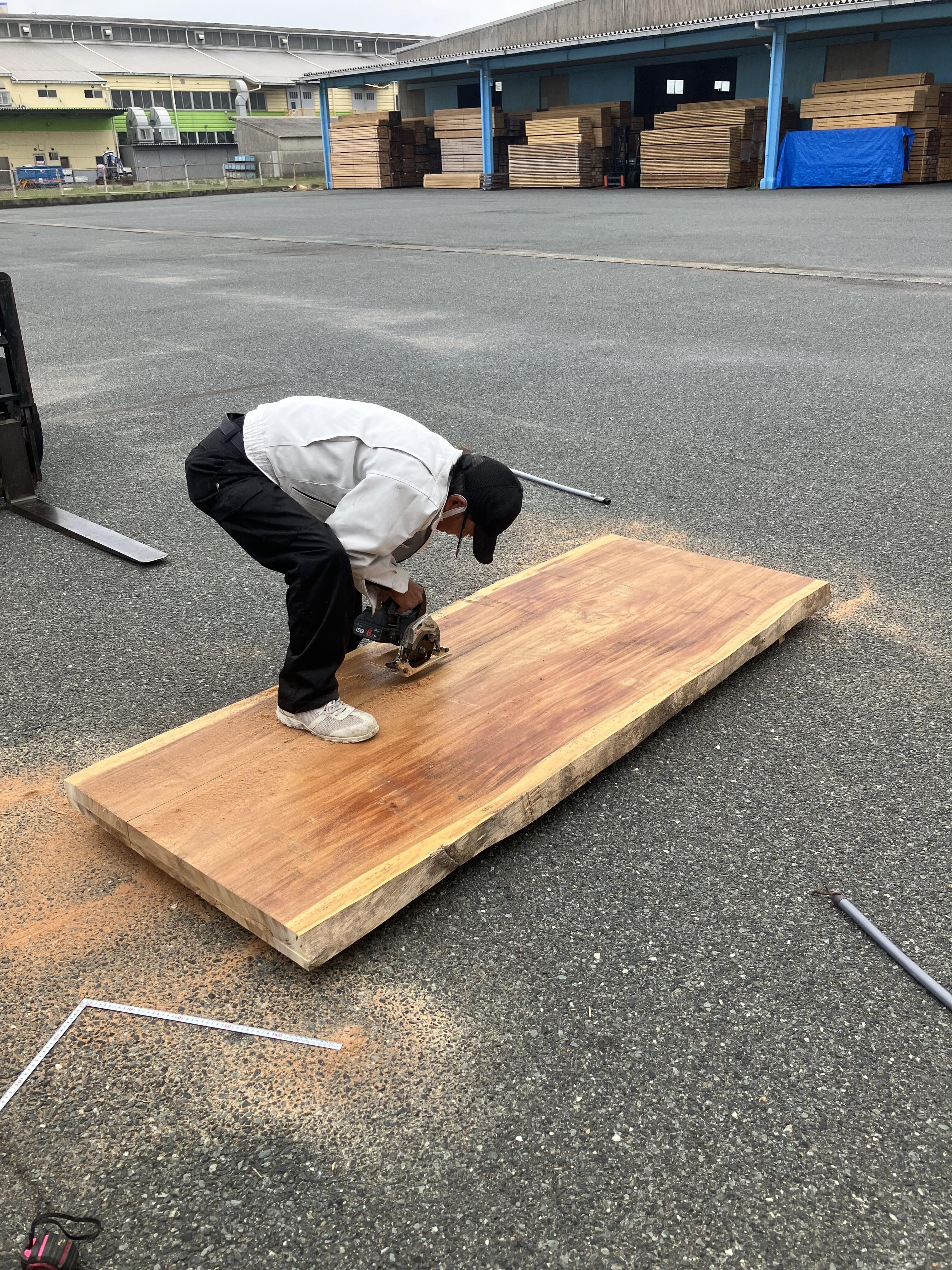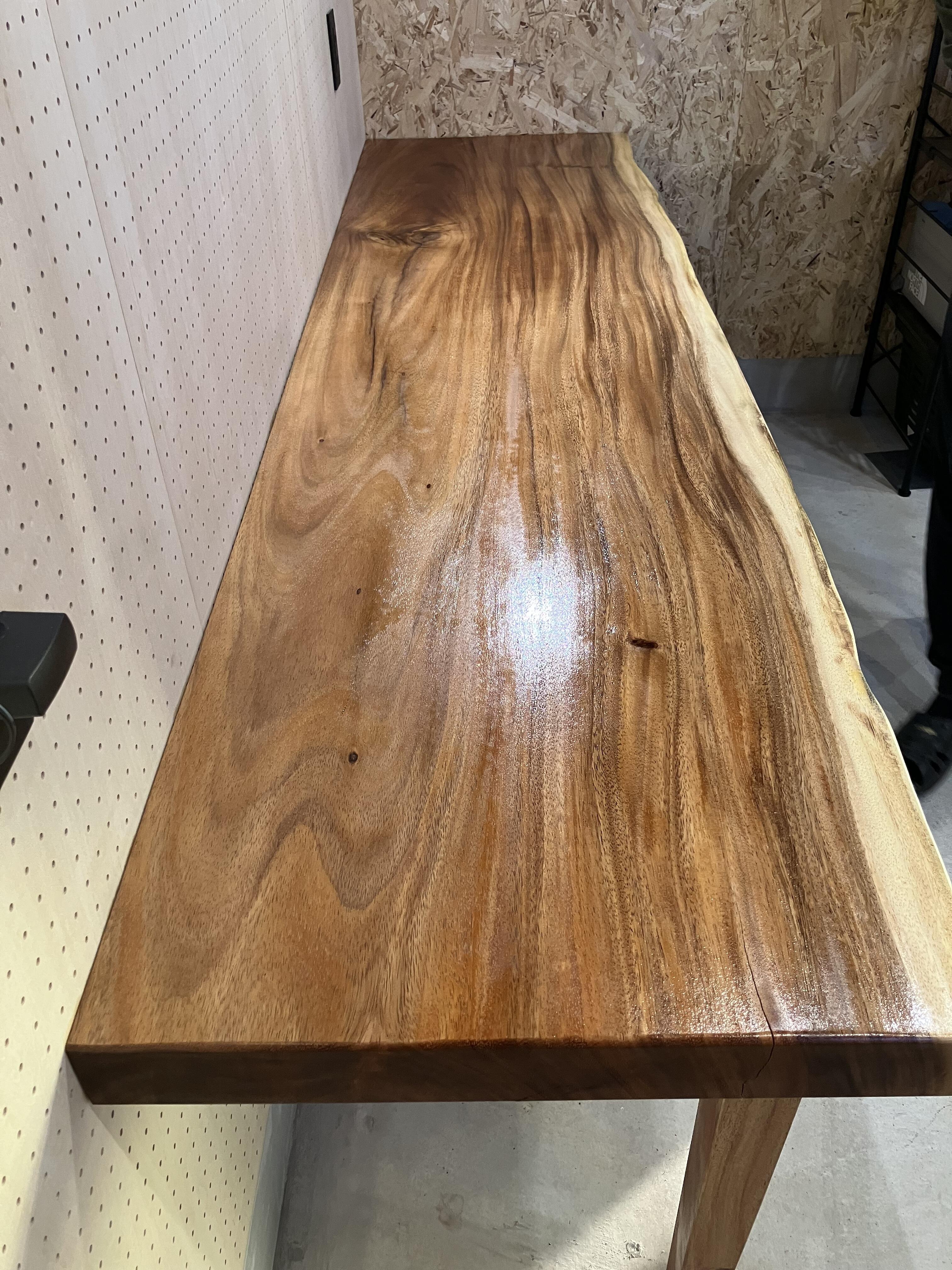 一枚板で耳付き(木の自然な凹凸が出せて木本来の表情がでる)材料をチョイスしてます。