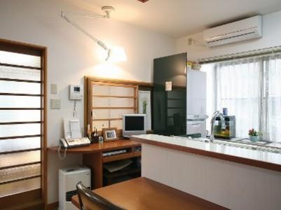 食事をする為に、スペースに合わせた食卓を設けました。また、書き物等をする為に、デスクスペースを設け、パソコンも収納できるようになっています。