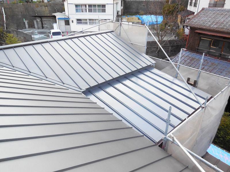 セメント瓦の屋根からガルバリウム鋼板、縦ハゼ葺きに変更。