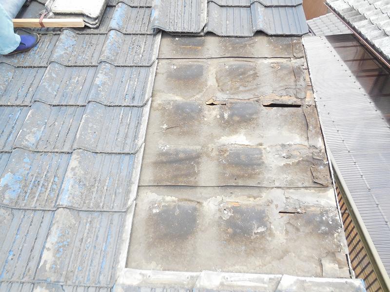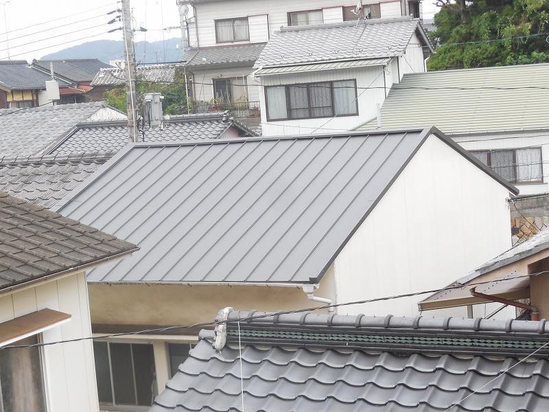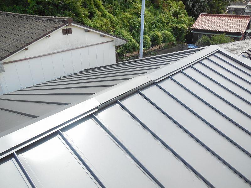 青いセメント瓦から、ガルバリウム鋼板、縦ハゼ葺きへ。 カラーは銀黒に変更しました。