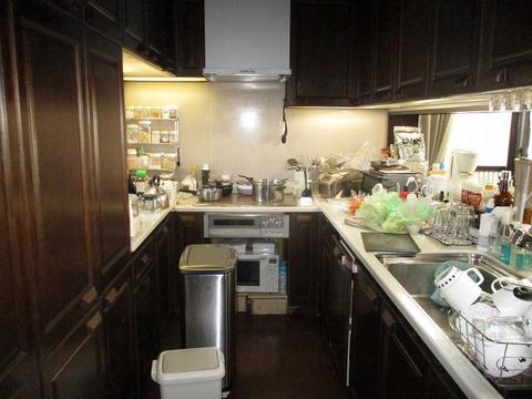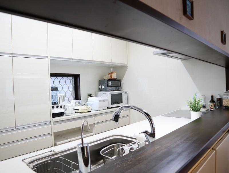 北側に位置し、窓開口も小さく、高級感のある家具調のキッチン・吊戸棚・背面収納は重厚感のせいで重く、圧迫感を感じていました。