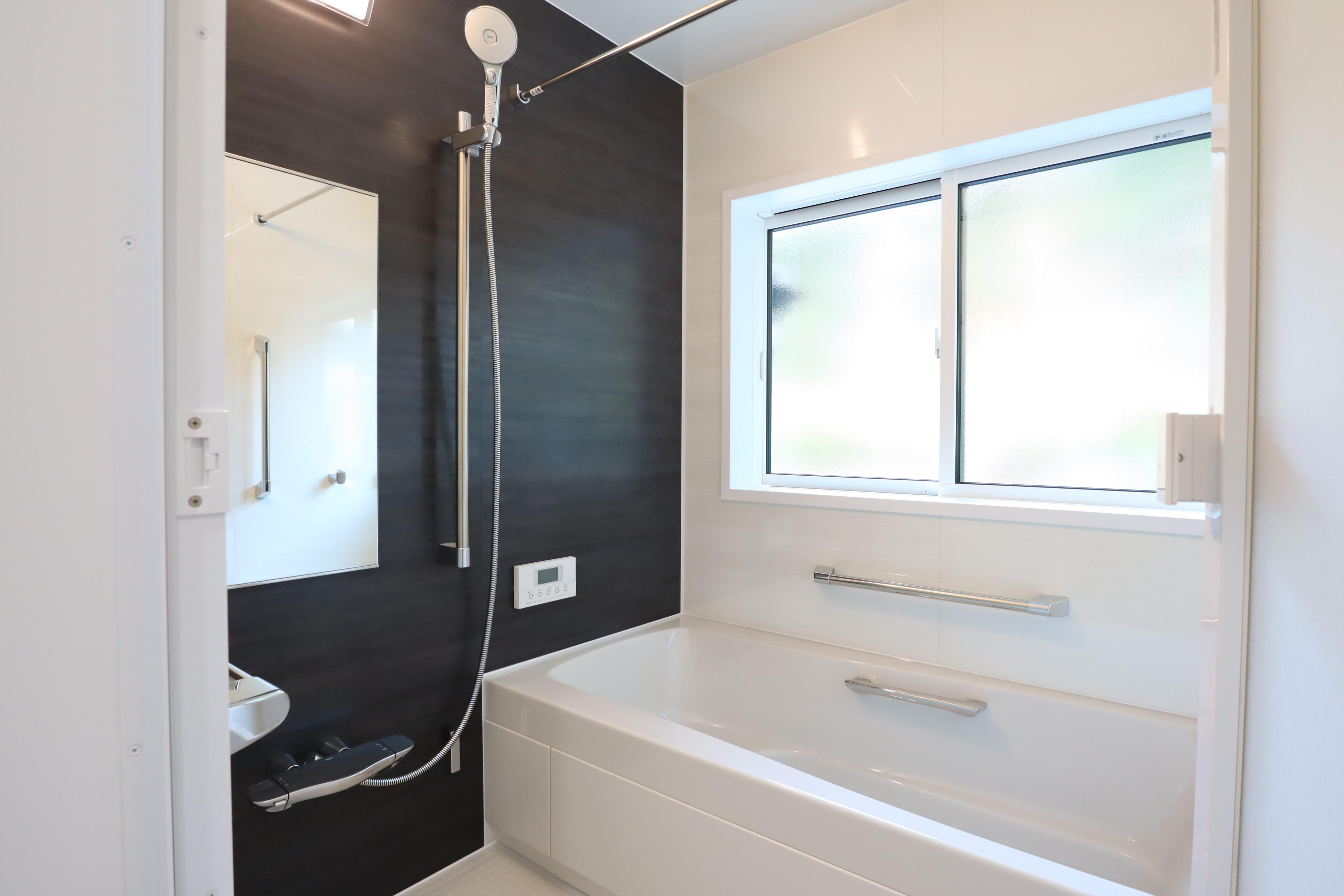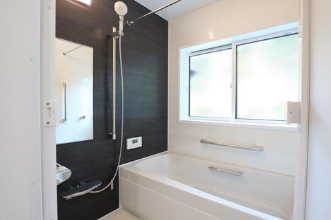 スパージュのゆったり1717サイズを採用し、 広々とゆったりくつろげる暖かい浴室にリフォームしました。 浴室入口の近くに設けた収納棚はタオルや衣類の収納に便利です。