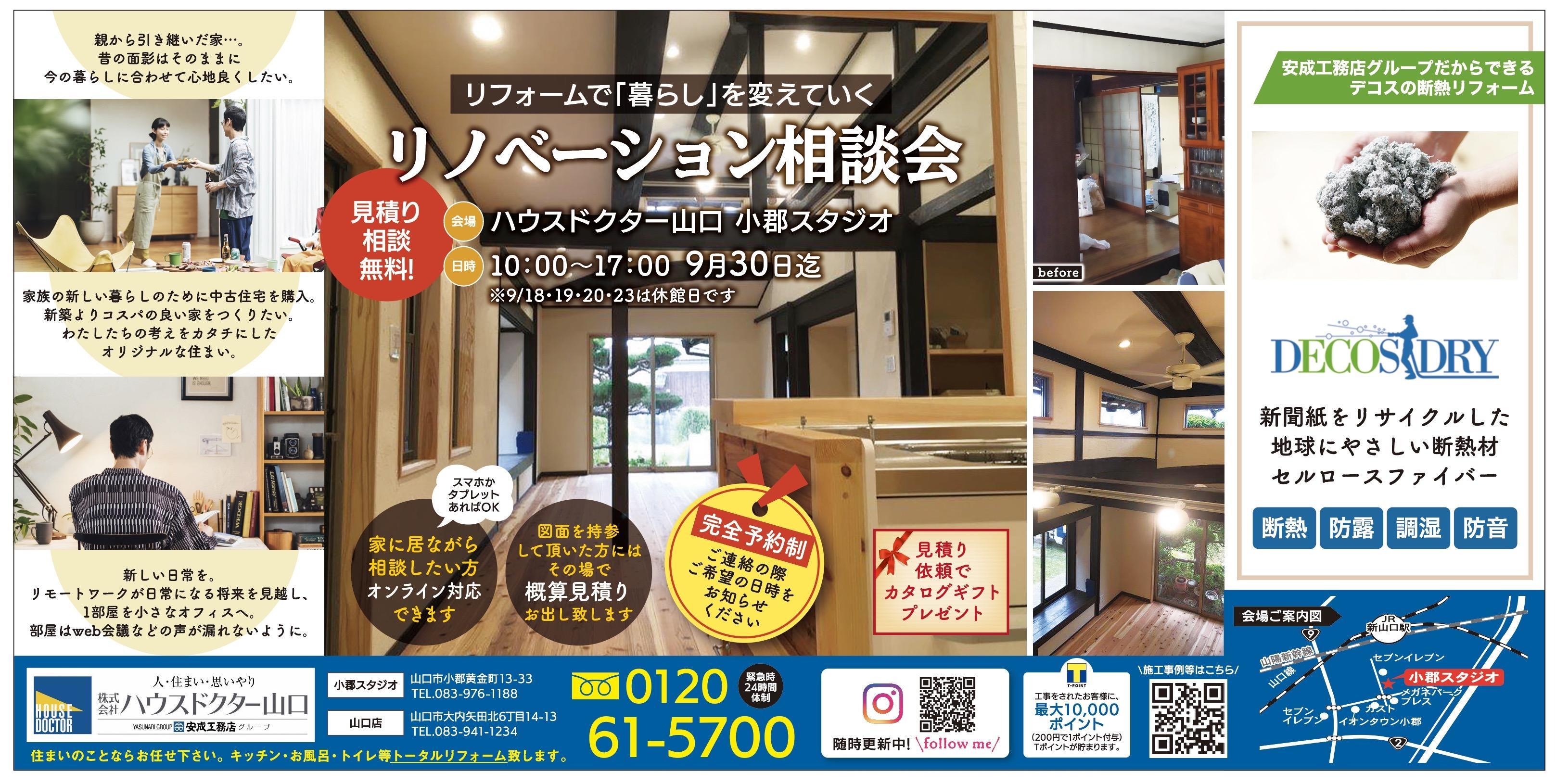 大好評につき、山口店・小郡スタジオではリノベーション相談会を9月30日迄、延長致します。