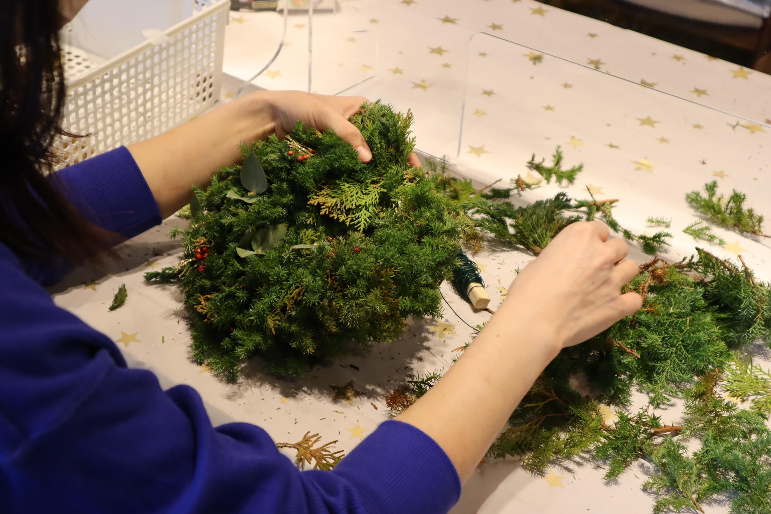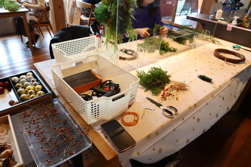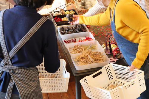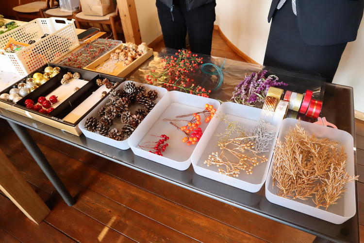飾りつけを追加したり、リースの表情を見ながら作業を進めていきます。