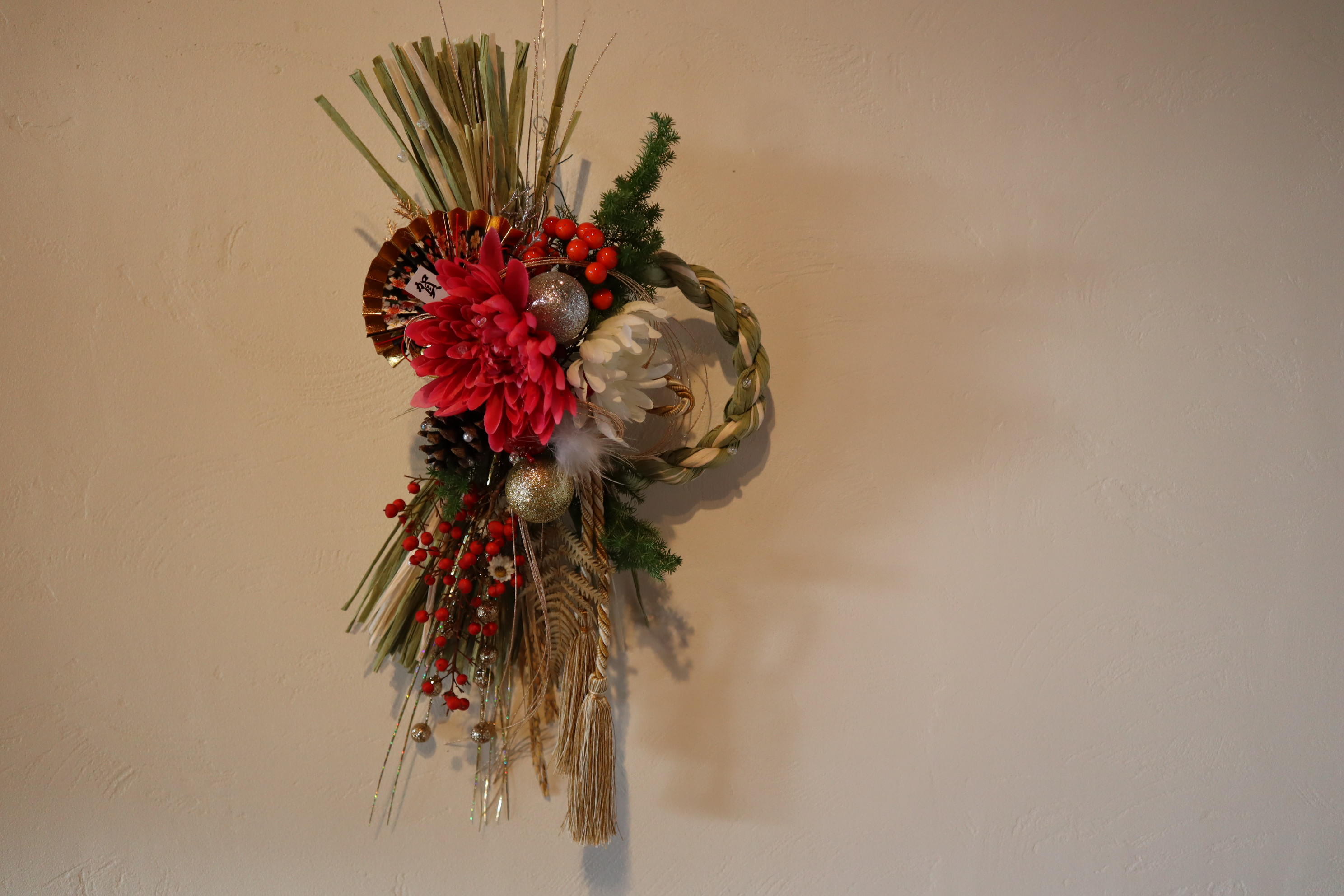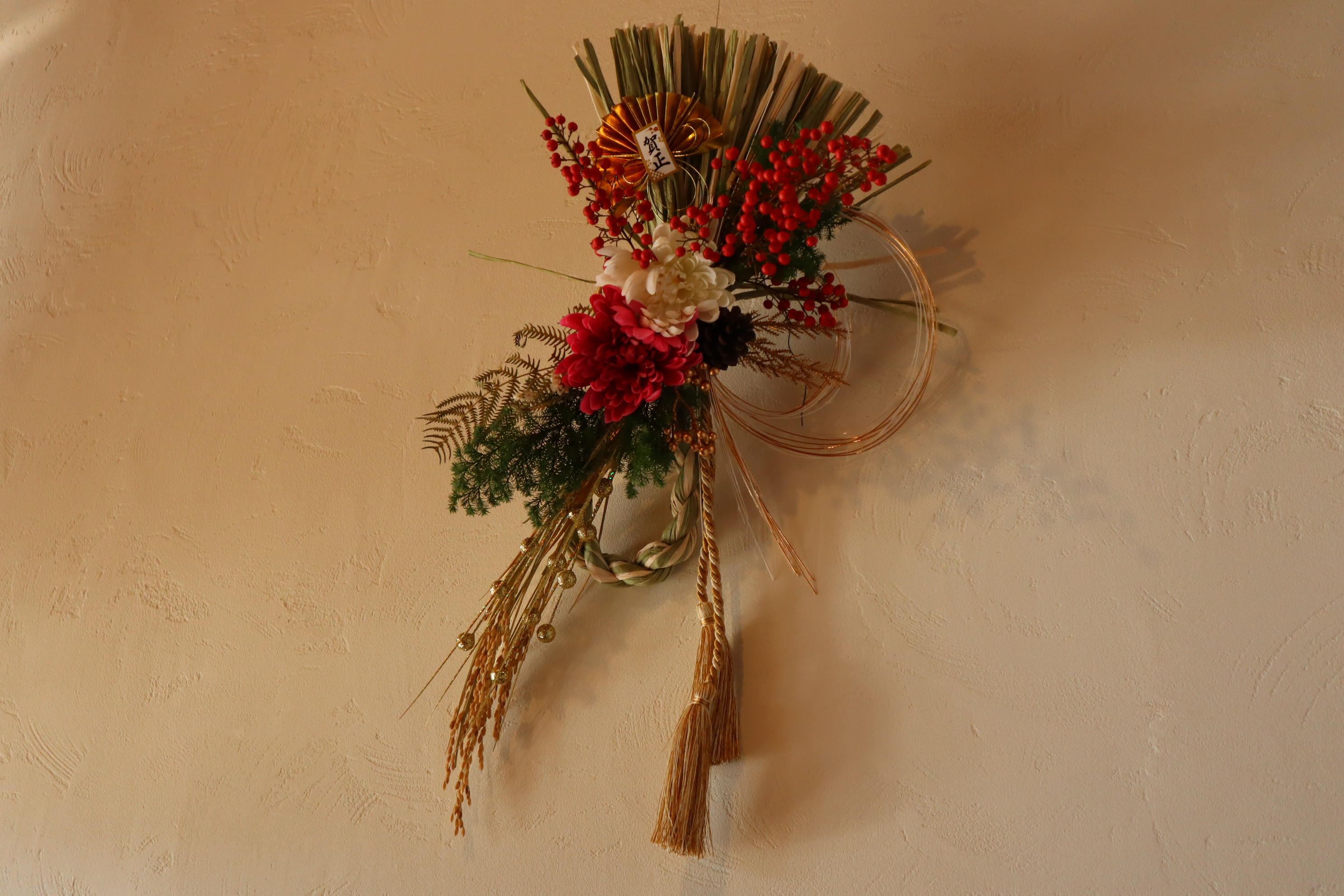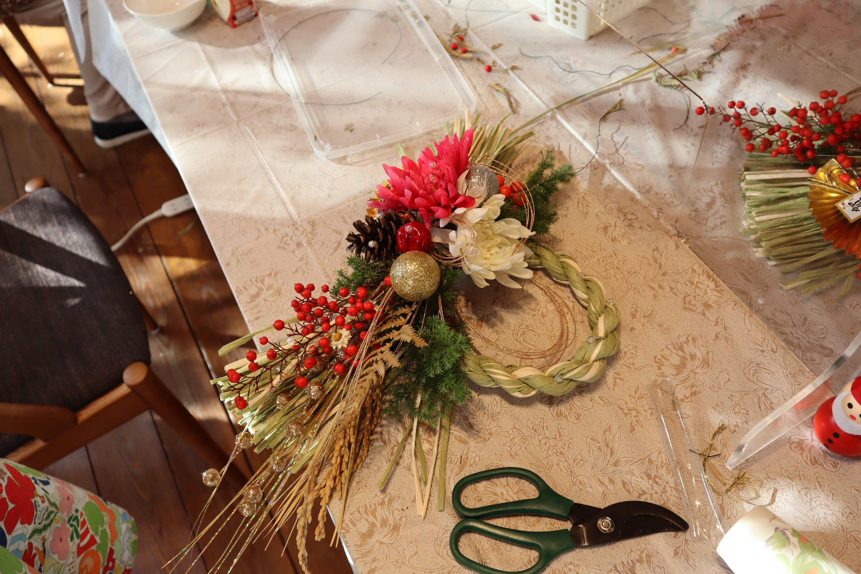 とっても華やかでお洒落な締め飾りが出来上がりました(^^)