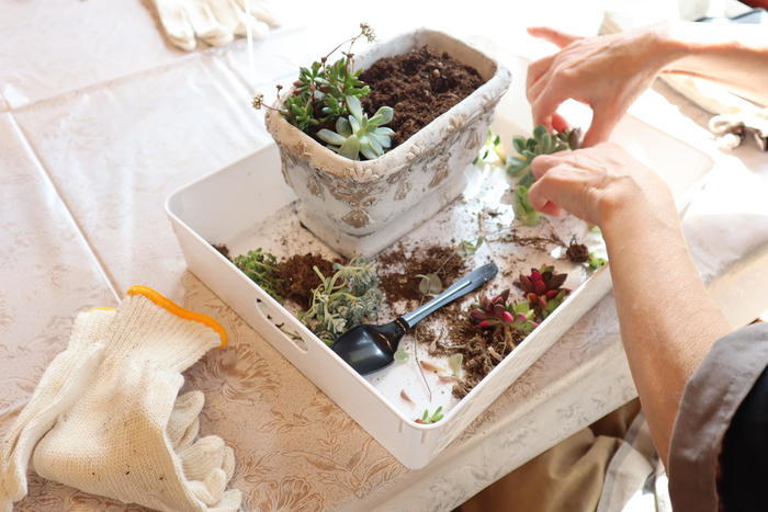 多肉植物を植え込む配置に悩みながらも