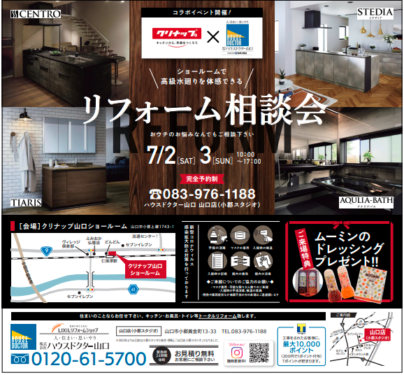クリナップ×ハウスドクター山口コラボイベントにぜひお越しください。