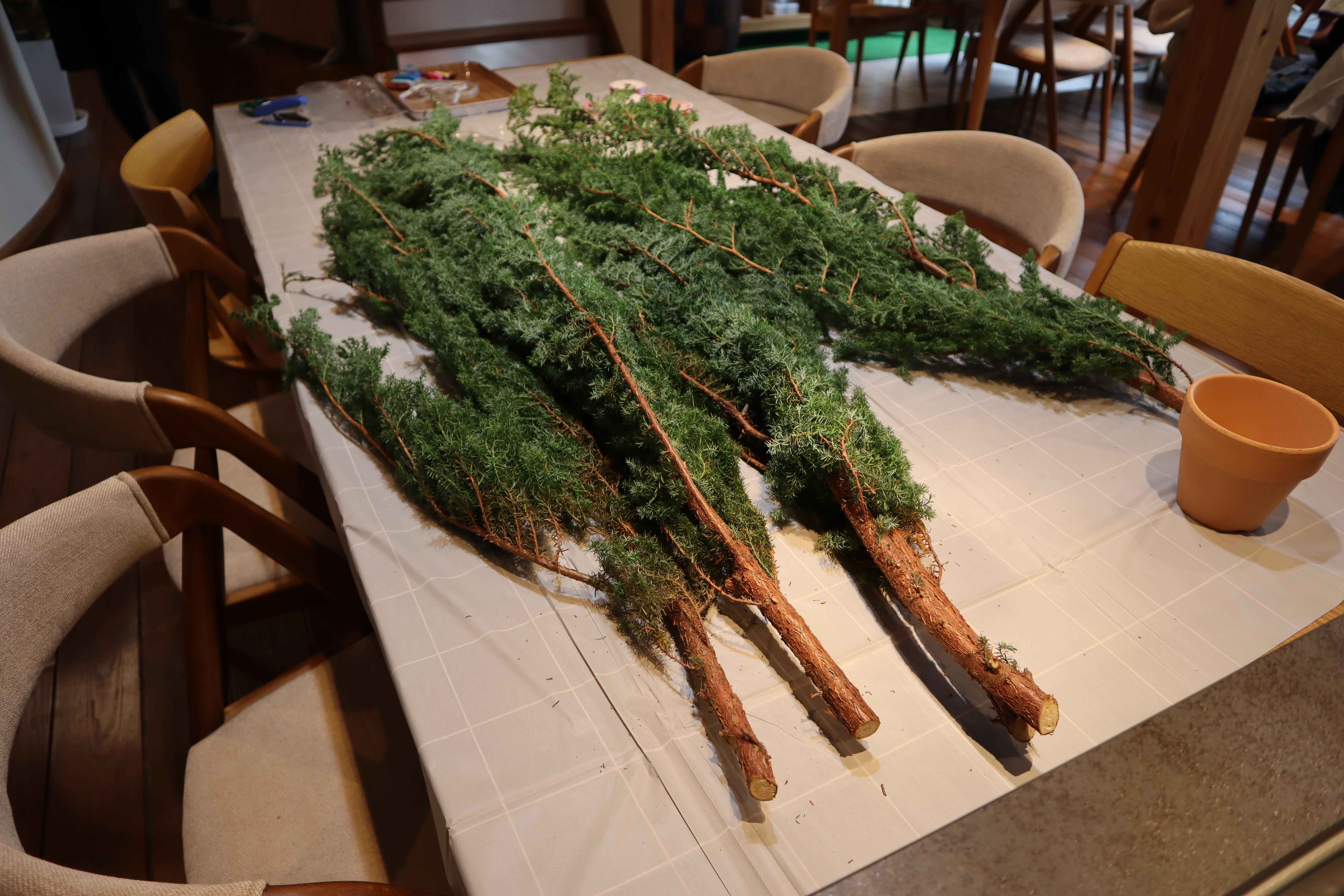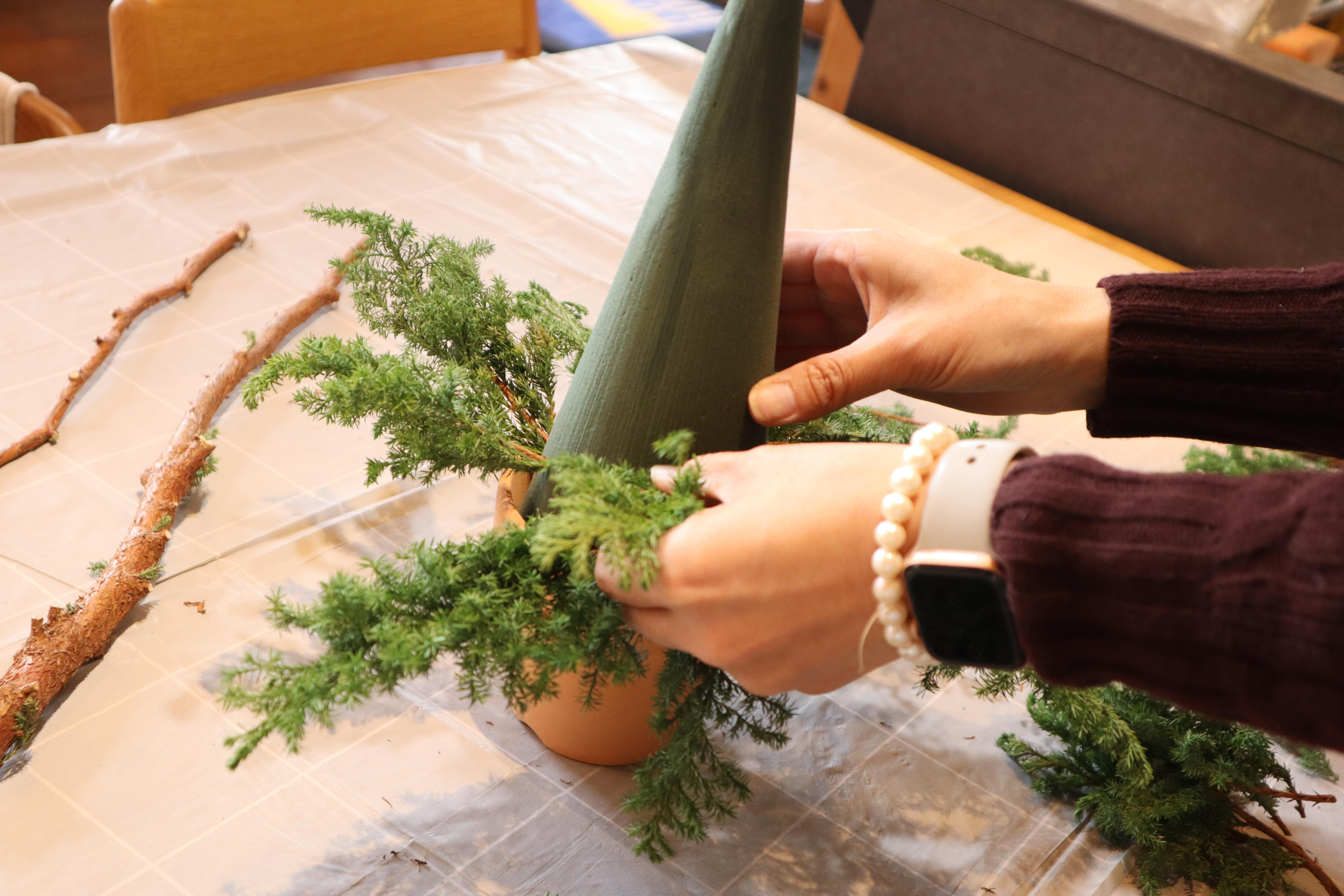 目に美しく、香りも楽しめる、生の自然素材を使って手作りのツリーを作りました。