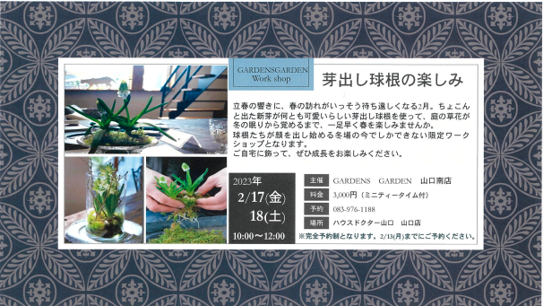 球根たちが顔を出し始める冬場の今でしかできない限定ワークショップとなります。