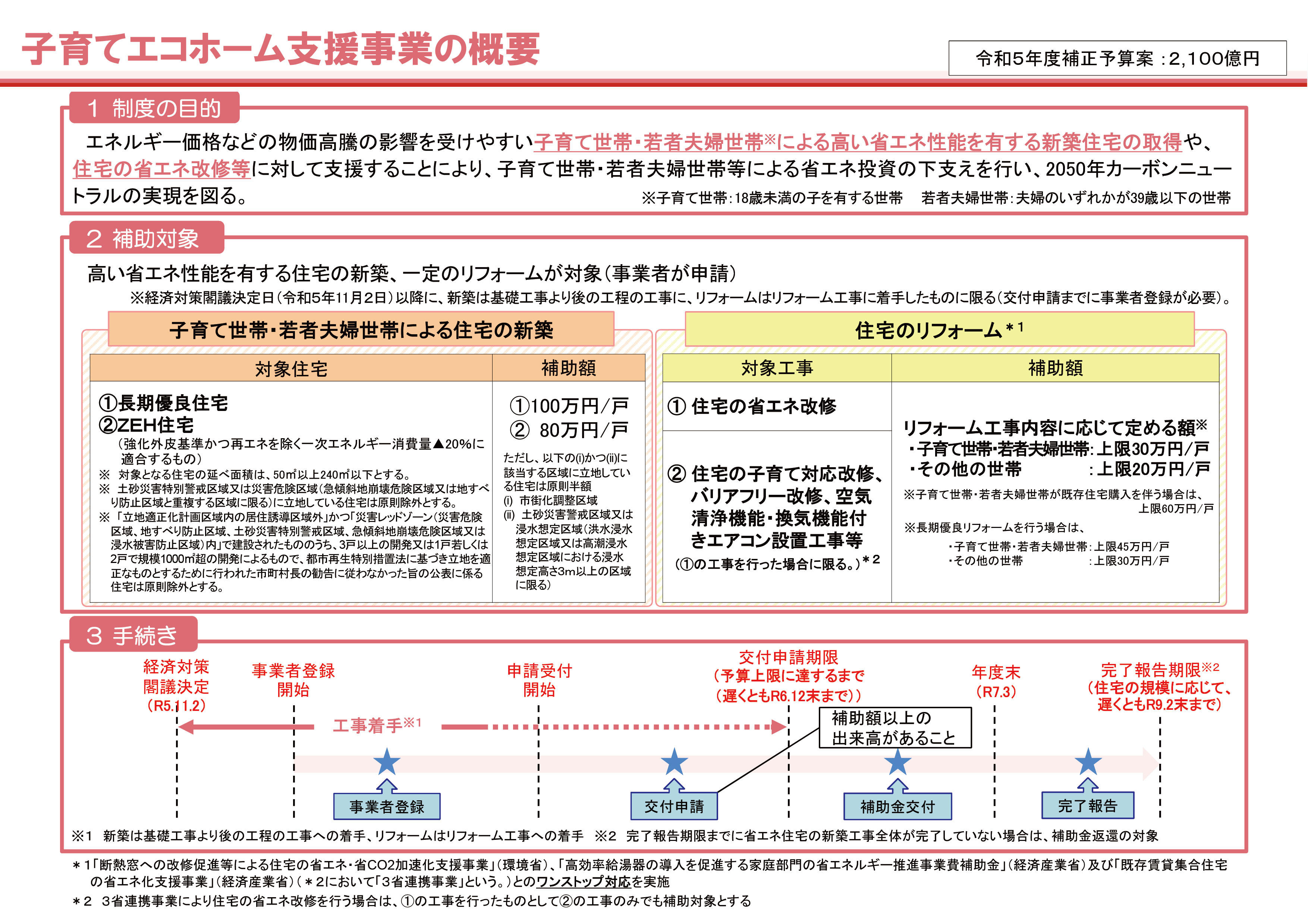 <子育てエコホーム支援事業(こどもエコすまい支援事業):予算2,100億円>