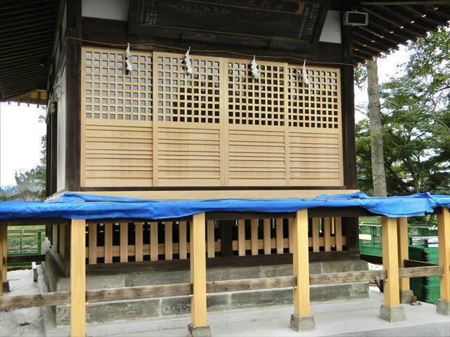 大前神社様の神護景雲年間御再建のから平成29年に御造替1250年の記念すべき年を迎え、弊社に神楽殿再建改修工事のご依頼をいただきました。再建工事内容は、基礎を新しく打ち直し、傷んだ柱や木材の張り替え、正面の扉も造作の1点もので新しく造り替え、瓦だった屋根は銅板に葺き替えました。また、神楽殿の中で舞を披露したりするとのことで、神楽殿の横に控室を新たに建造いたしました。歴史ある建造物工事に携わることができ職人一同光栄です。今後ともご参拝にいらっしゃる皆様方を見守る建物であることを願っております。