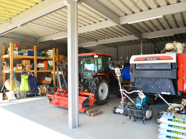 大切に使われてきた納屋を老朽化が激しいため、解体し、車庫を新設させていただきました。農機のほか、農業資材や収穫した作物の一時保管、作業場など、用途に合わせてフレキシブルな使い方ができますので、これからますますの発展を願っております。