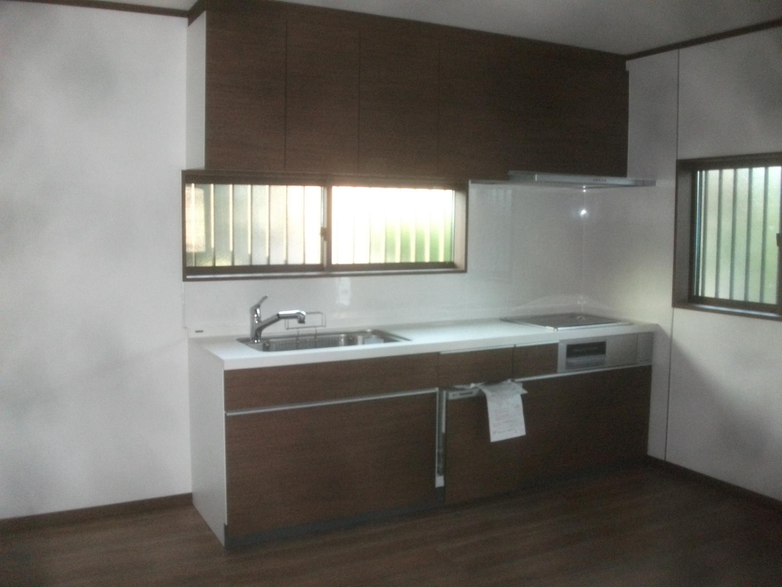 お選びになったのは、すべてLIXIL商材。(キッチン:シエラ、お風呂:アライズ、洗面:ピアラ、トイレ:アメージュZA)キッチンは、ガスコンロからIHに替え、使い勝手をよく、扉の色は、木目調の落ち着いたダークブラウンをご選択。ビルトインの食洗機もご採用に。