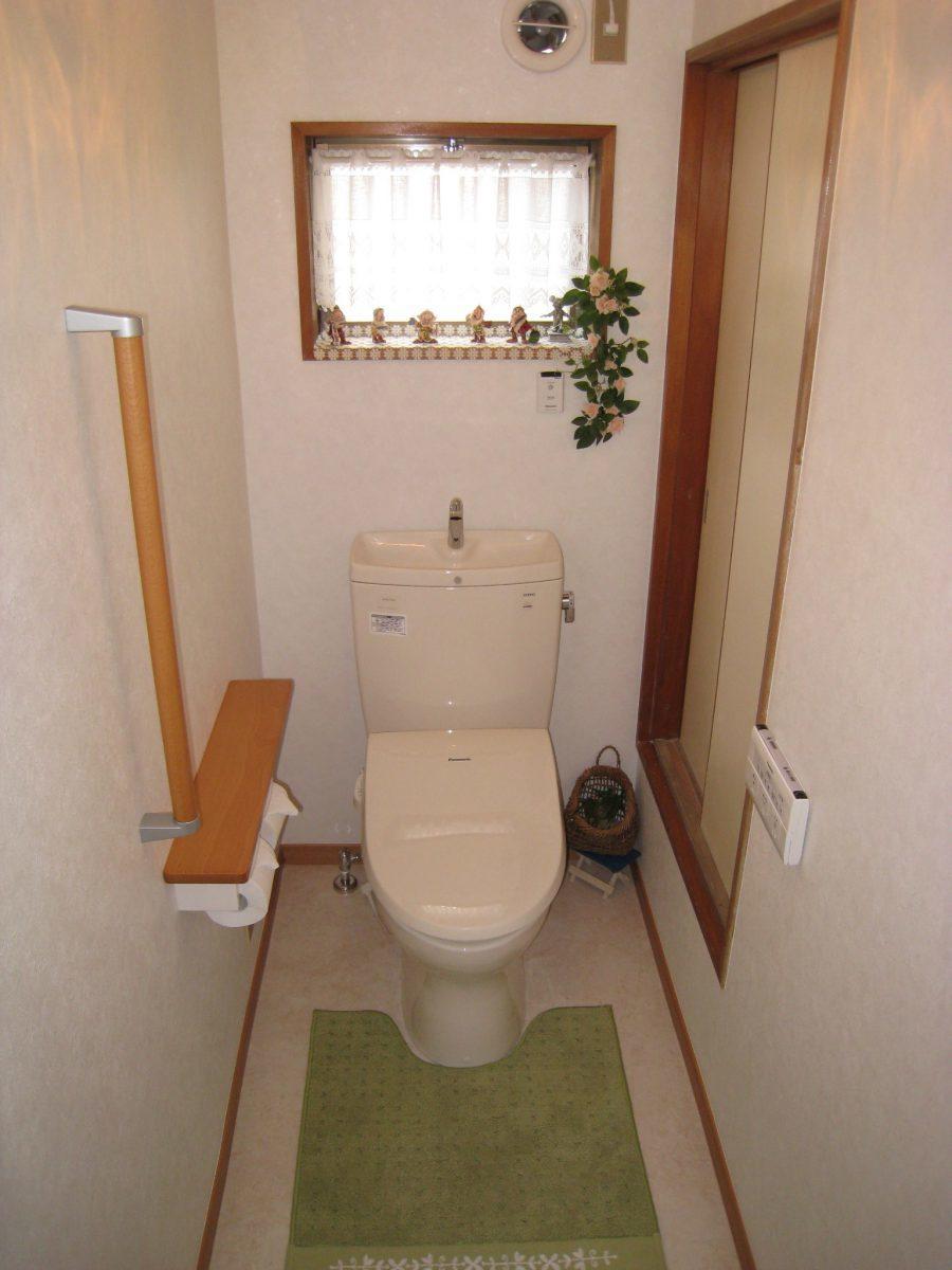 ヒヤッとしていたタイルはすべて撤去しクロス仕上げに変更し、手すり付の紙巻器を新設いたしました。
