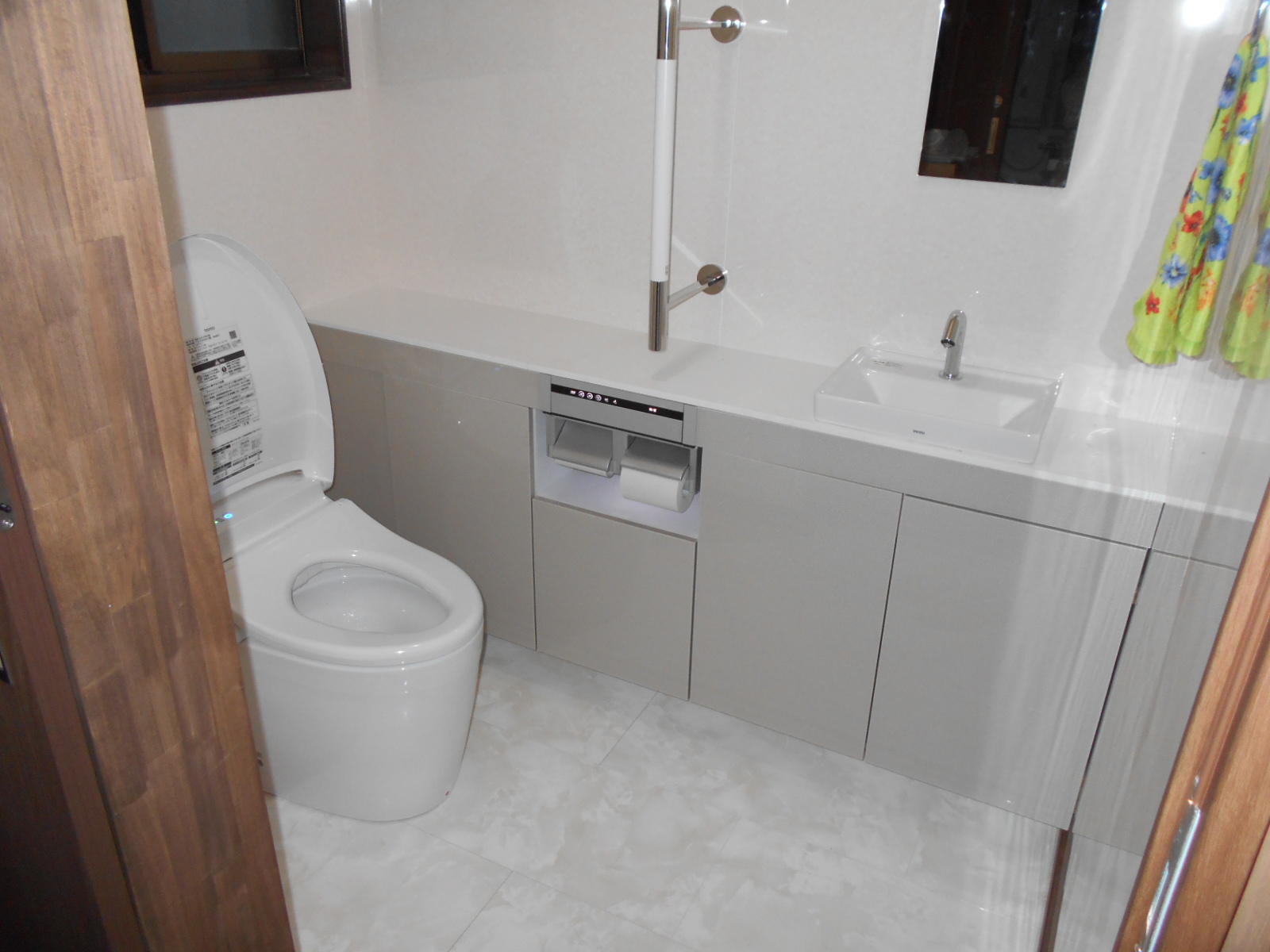 見た目のカッコよさだけではなくお掃除もしやすい素材なので、これからも気兼ねなくママ友さんを自宅に招いていただき、ご自慢できるトイレとなればと思います。