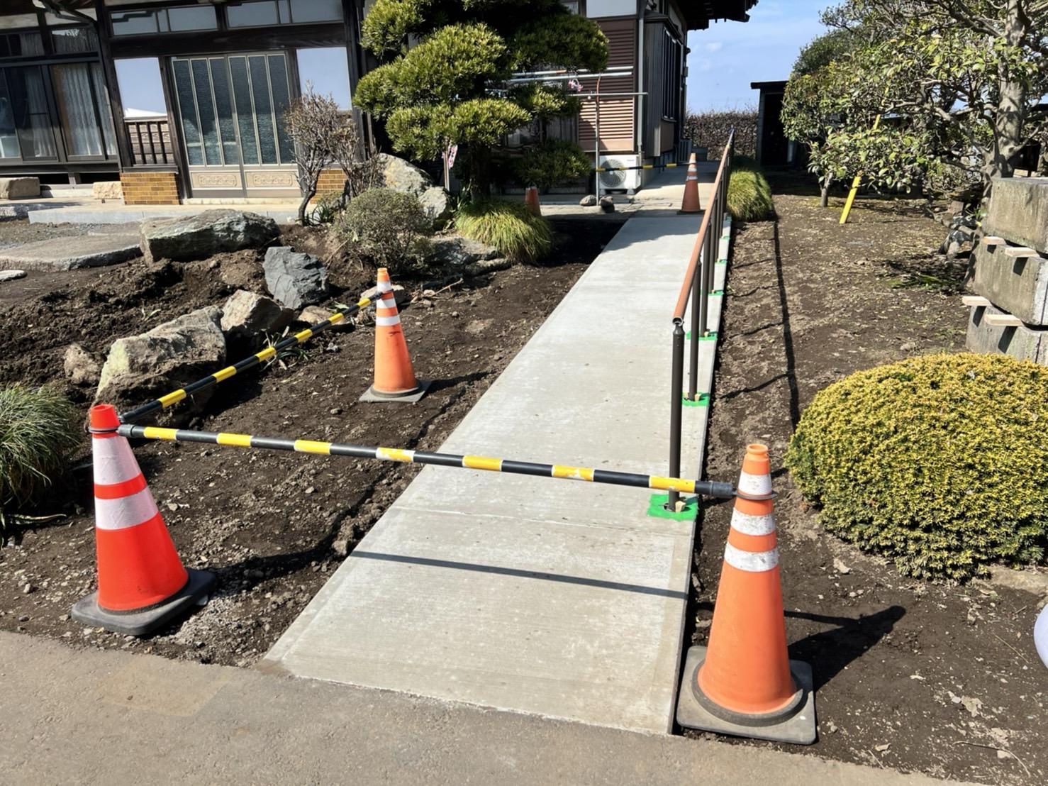ご高齢のお母様が車椅子での移動になったため、玄関先の階段からの移動が難しく、スロープ工事のご依頼をいただきました。