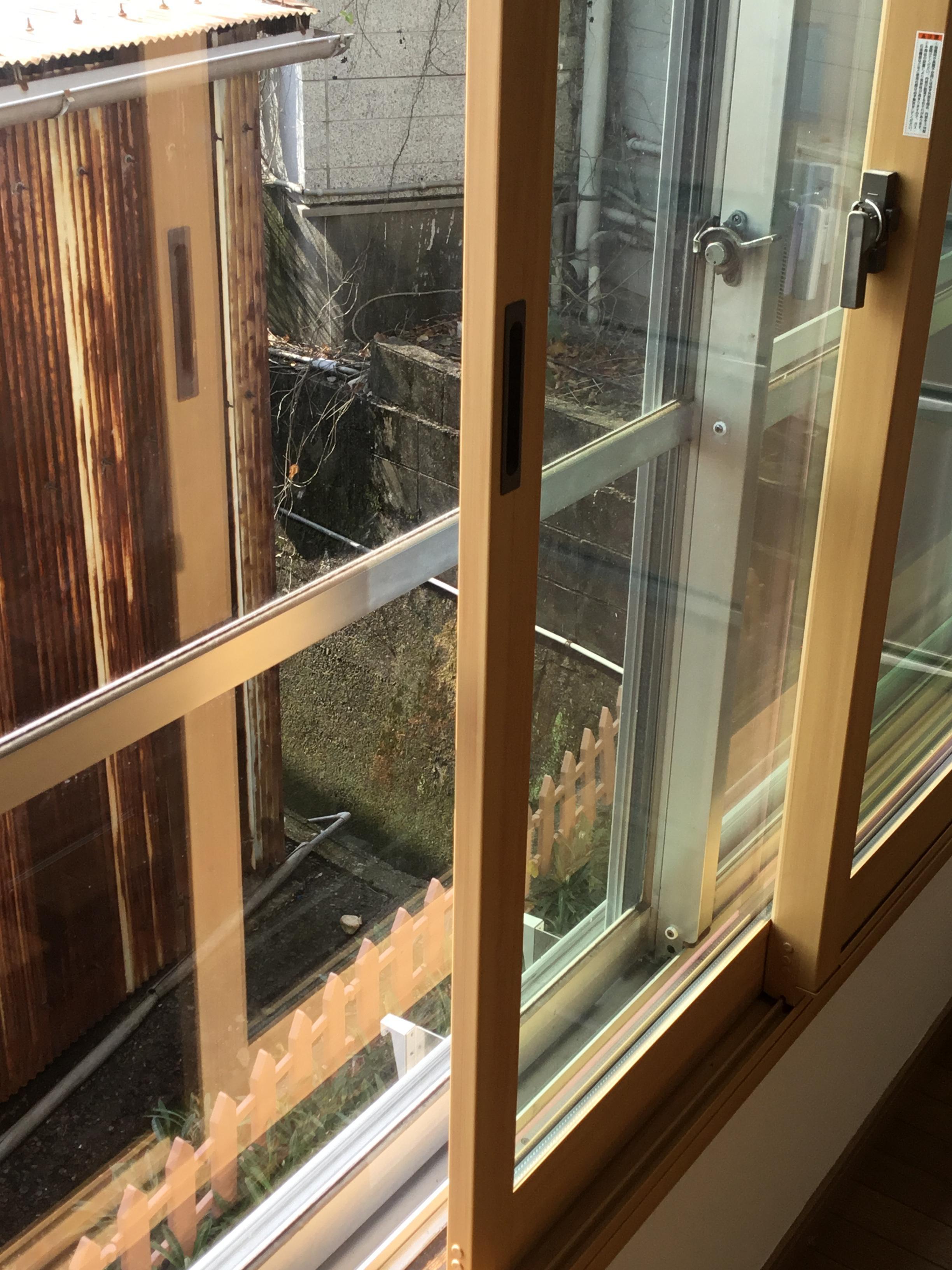 外にはトタン屋根の物置小屋があり雨の打ち付ける大きな音に悩まされていました。寒い時期は大きな窓なので傍はひんやりして部屋が暖まりにくいのでインプラスをつけることにしました。