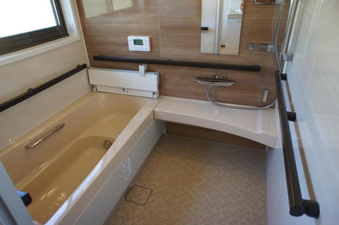 浴室のリフォームでは移動しやすくするため、手すりの設置・段差の解消・出入口の開口部の拡張などを行いました。