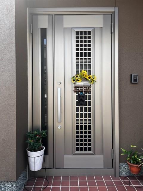 「玄関は6匹の猫ちゃんと暮らす奥様から風通しを良くするため玄関を少し開けておくのですが、隙間から猫ちゃんが外に出てしまったり網戸にすると爪で破いてしまうので困っています…」とのことでしたので、採風ができるリシェント玄関に変えて風通しができるようにしました。