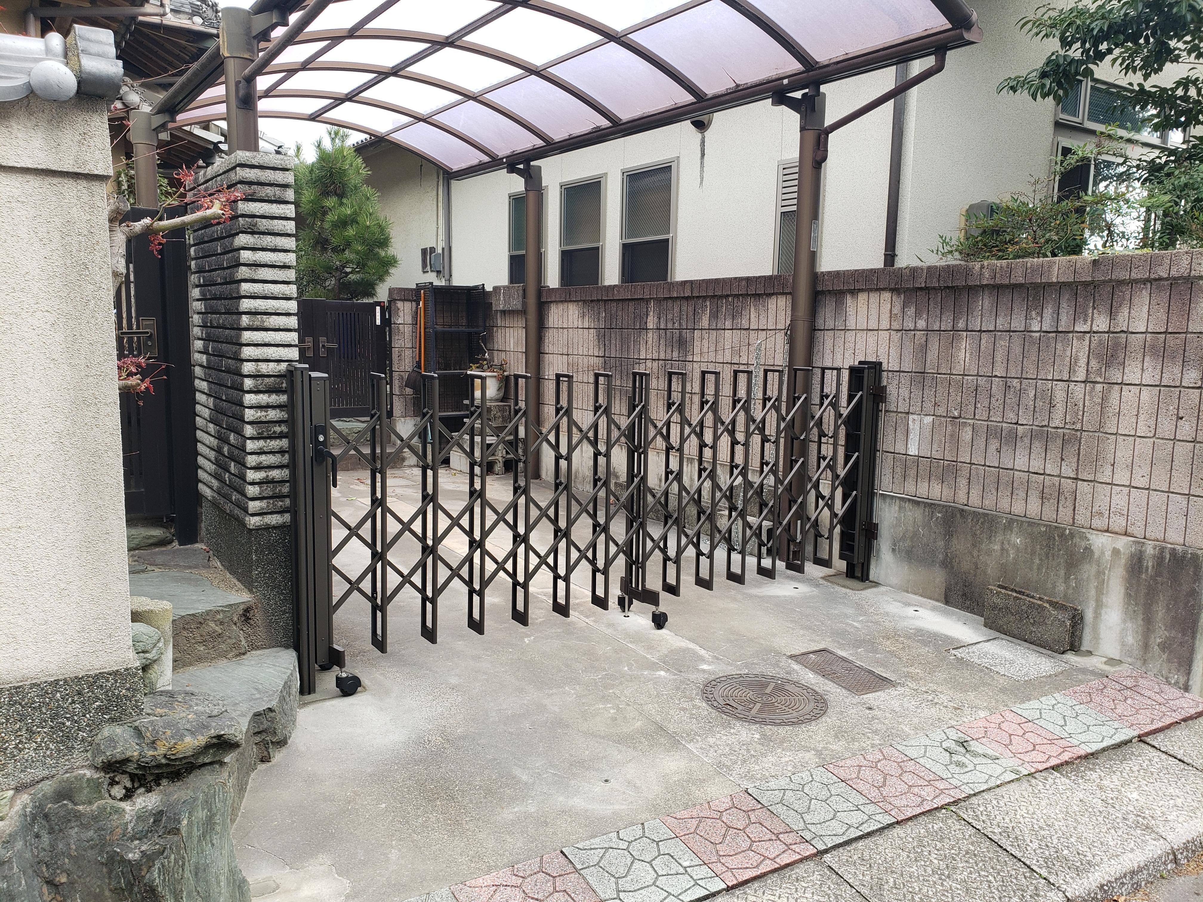 今までの伸縮門扉は車を停めていた為、手前に設置されていました。