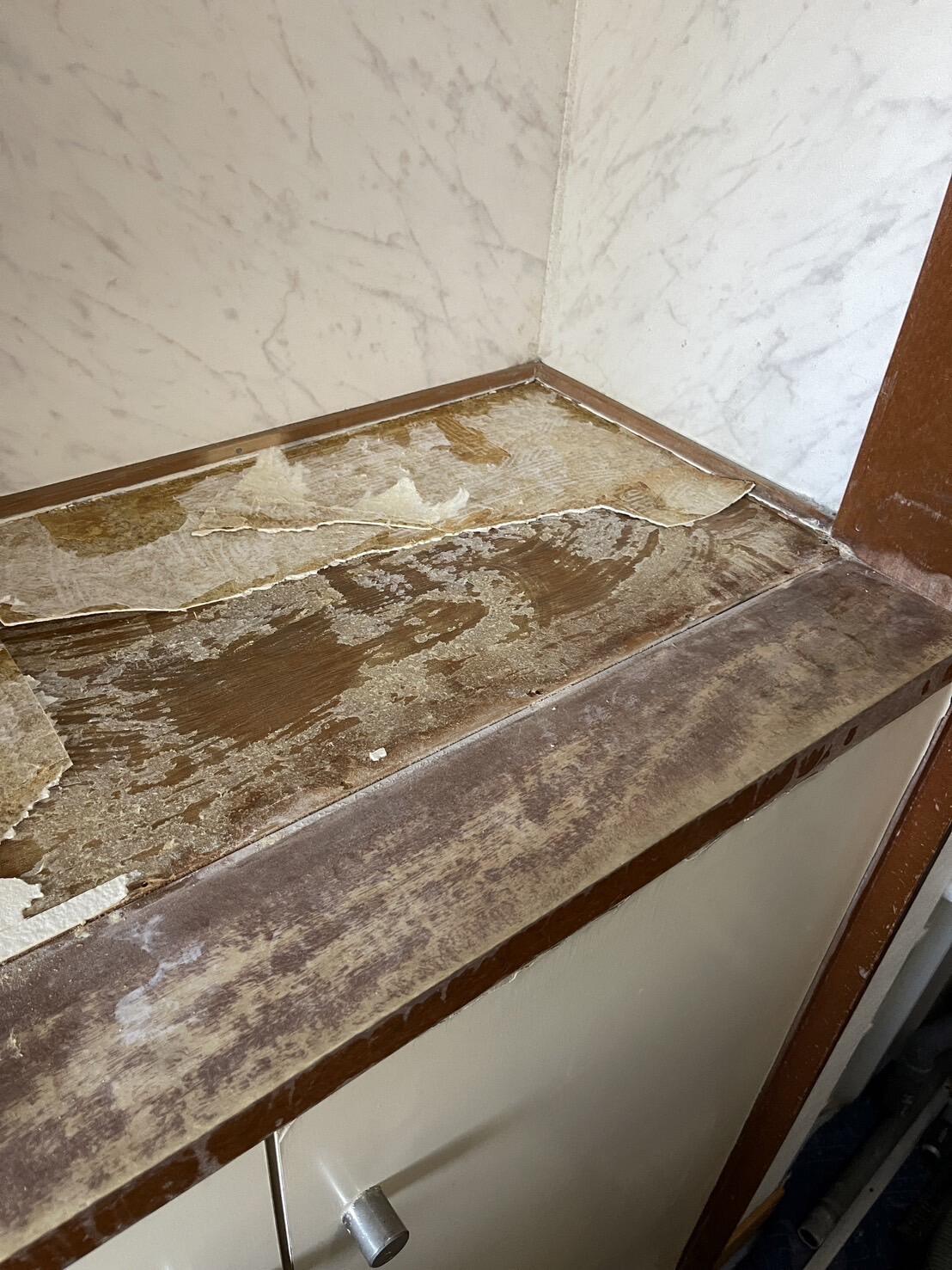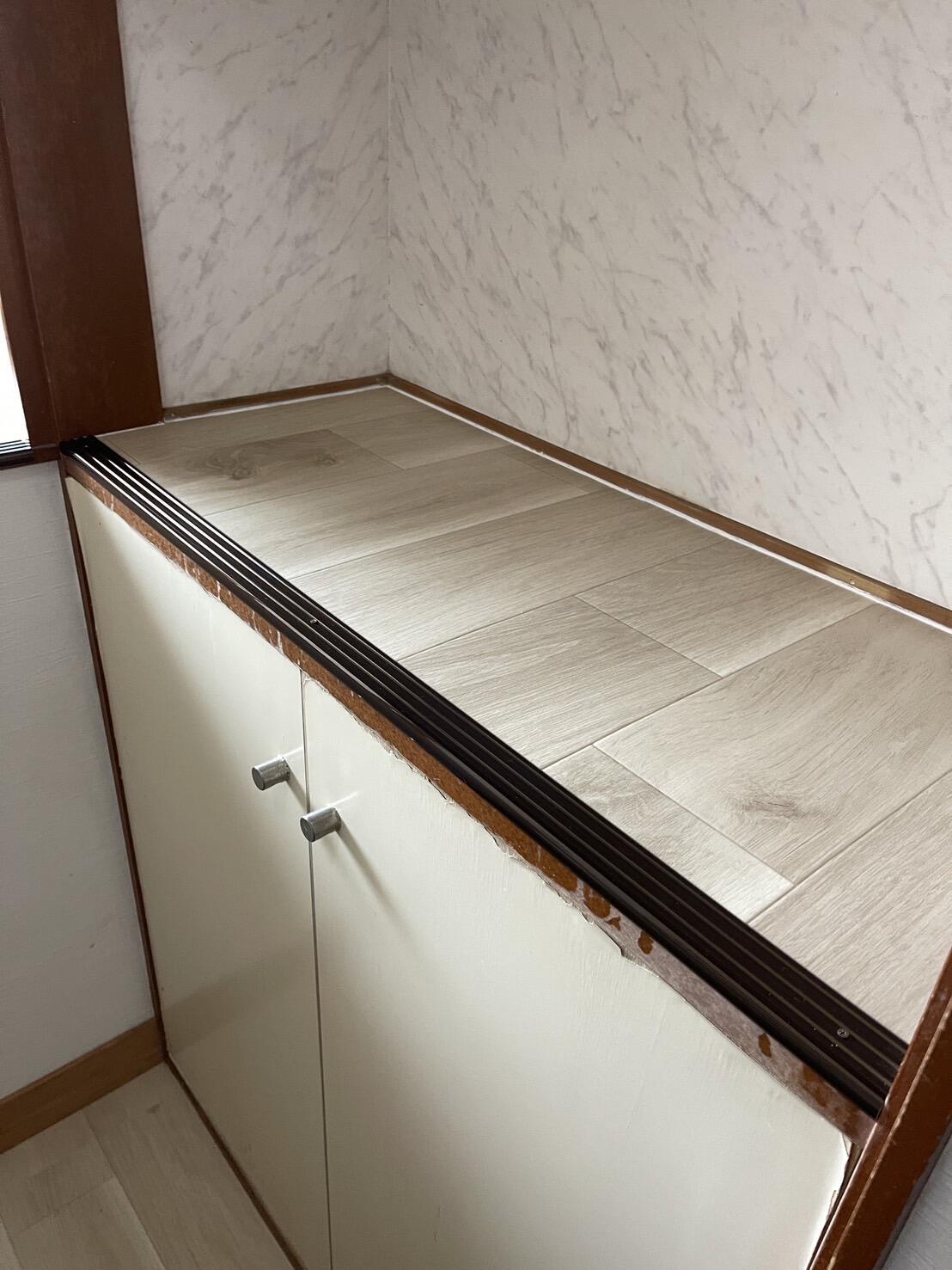 栃木県益子町で、脱衣室のカウンター部分の、一部のクロス補修工事をさせていただきました施工事例です。
