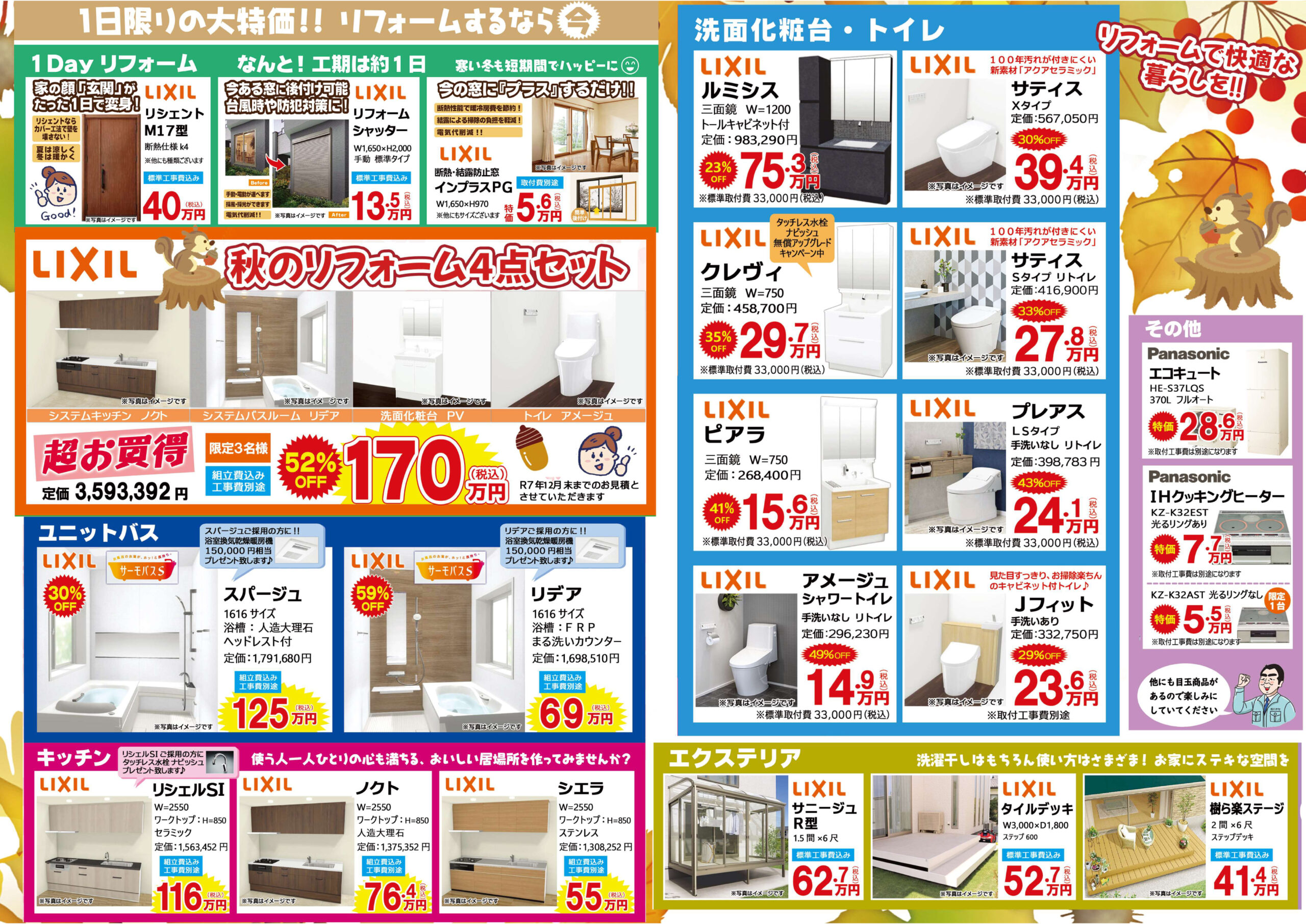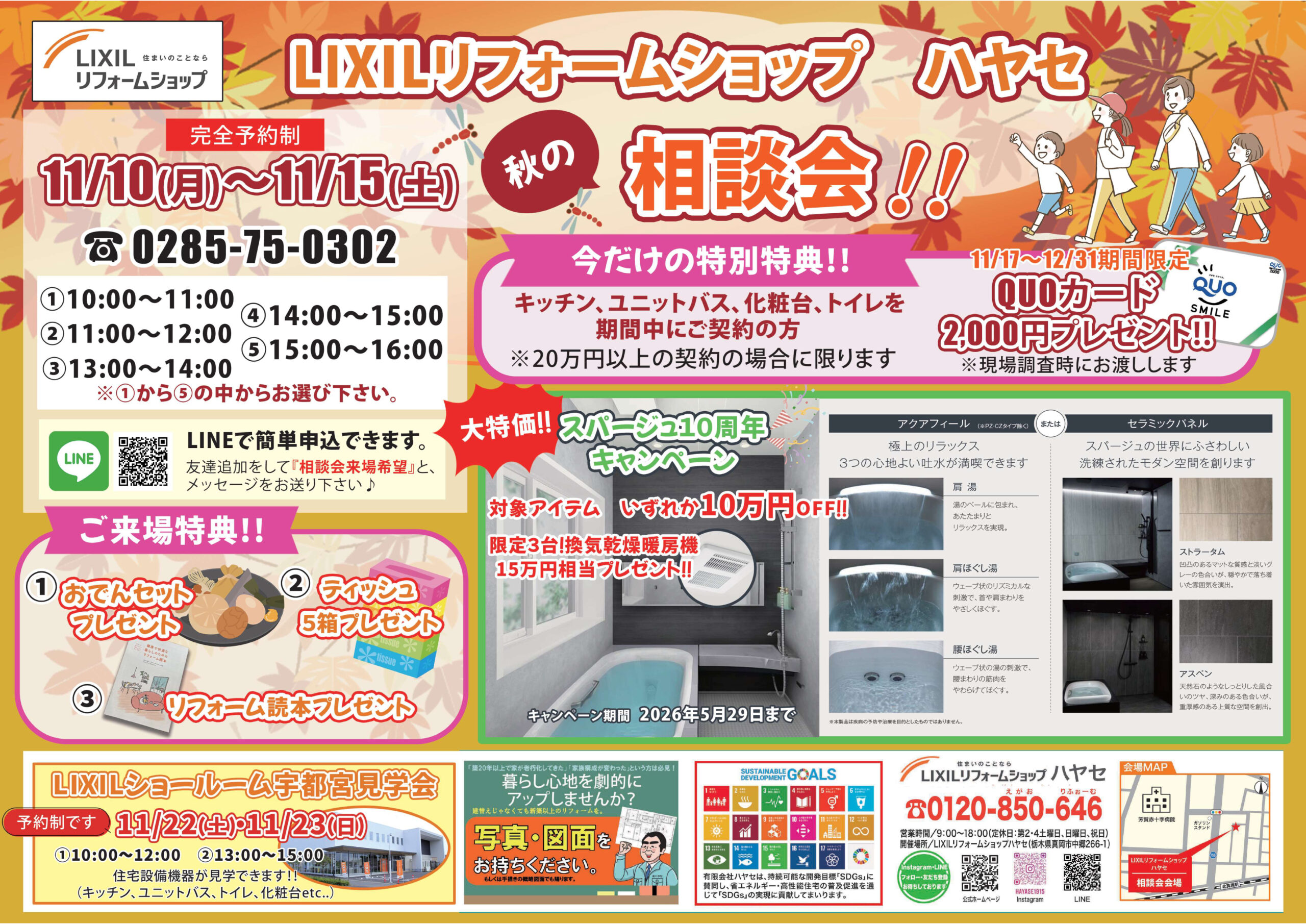 11/10(月)~11/15(土)10:00~16:00に、秋のリフォーム相談会を開催いたします(^^)/