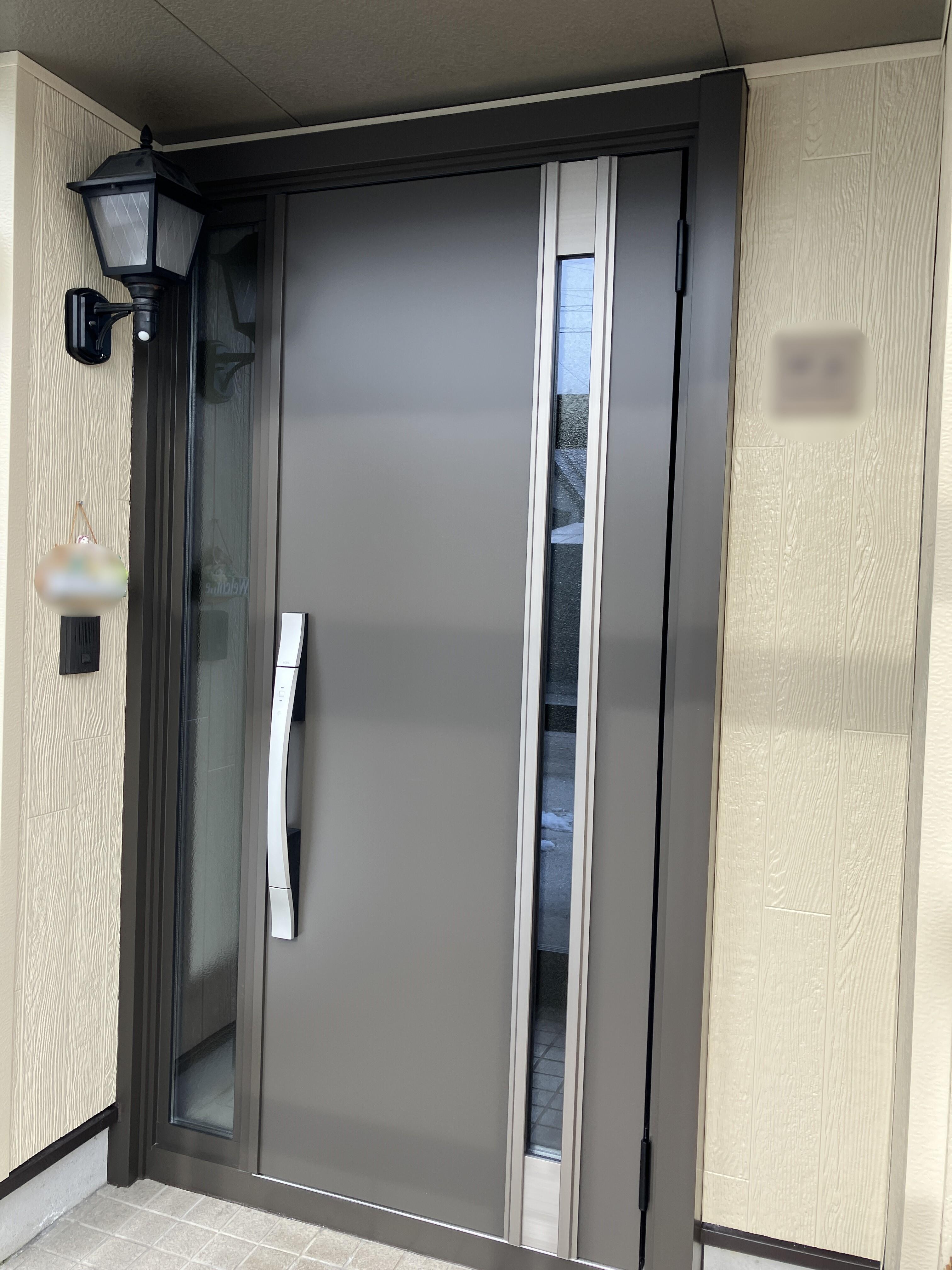 1日で工事が終わるのが、このカバー工法の一番の魅力です。 玄関ドアの色も気に入って頂き嬉しいです。 断熱性能もアップしているので帰宅時のヒヤッと感が無くなっているかと思います。 この度はありがとうございました。