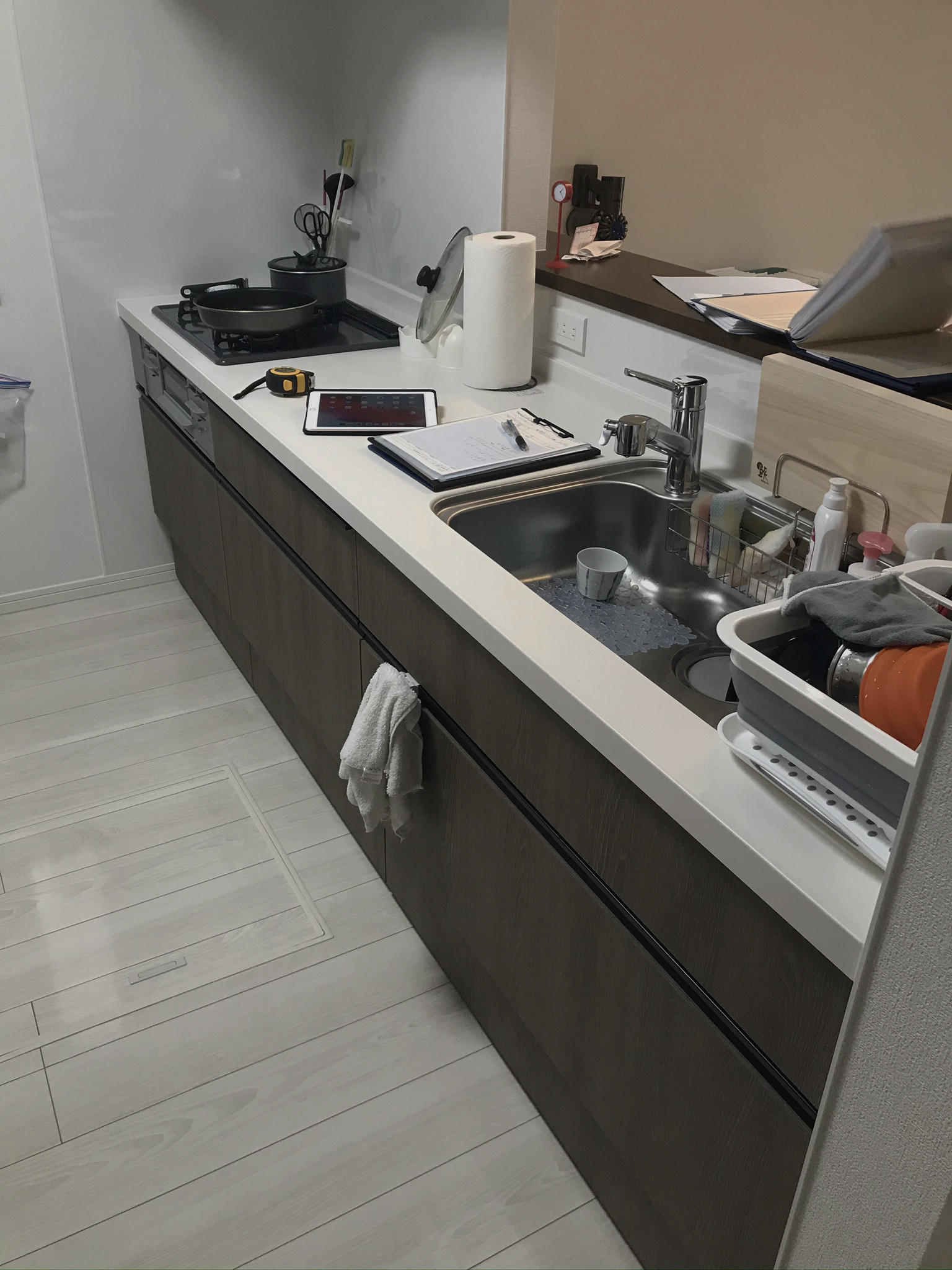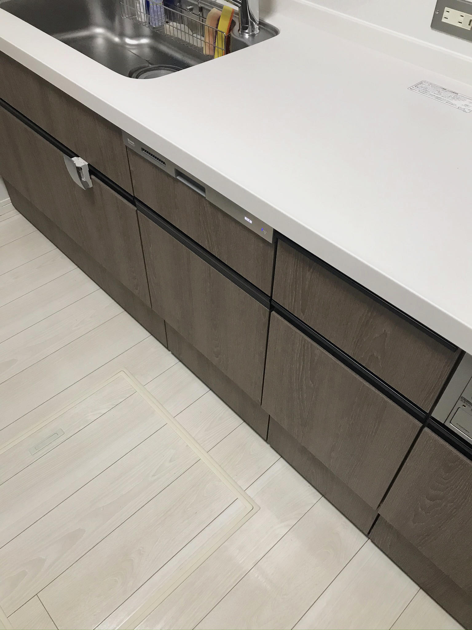 LIXILのシステムキッチンが入っているので現状の扉材と一緒の統一された深型の食洗器を入れたい。