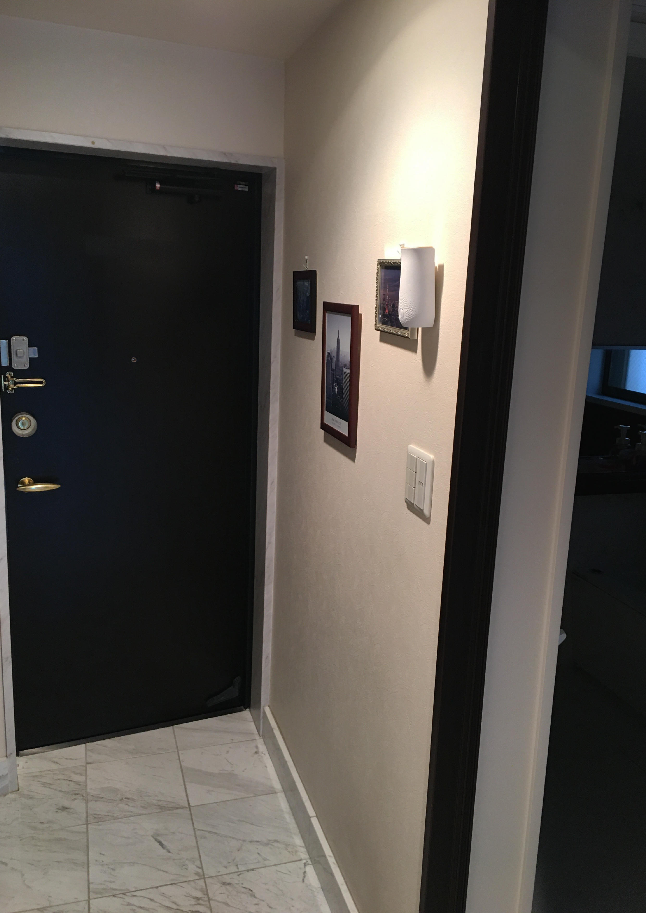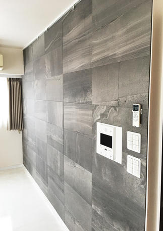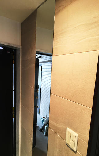 お客様から直接のお問い合わせでした。 家具の配置を変えるので、壁一面にエコカラットを貼りたいという事と、玄関に姿見が無いのでミラーを貼りたいとの事でした。
