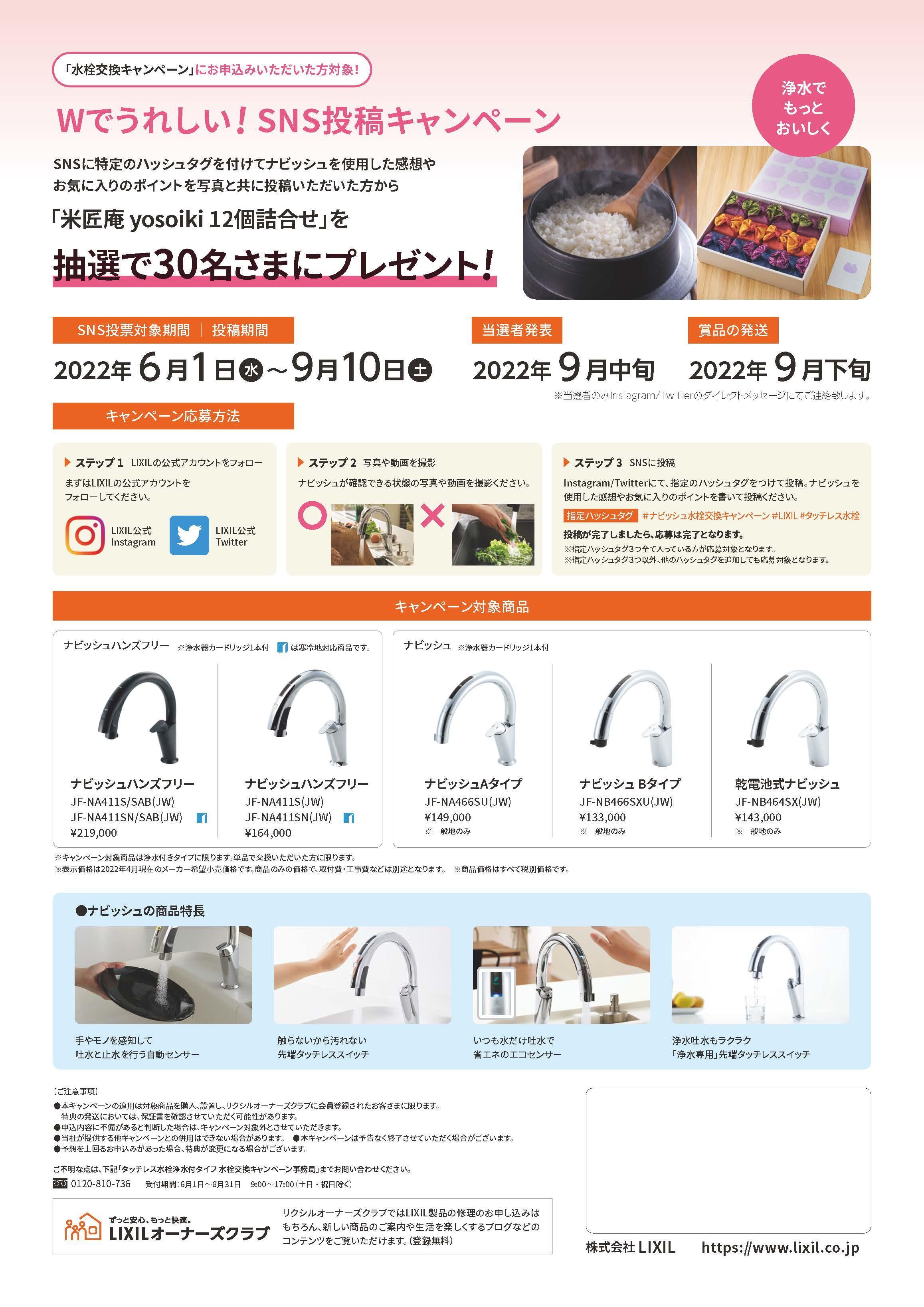 今回は『ナビッシュ水栓キャンペーン』のお知らせです!!