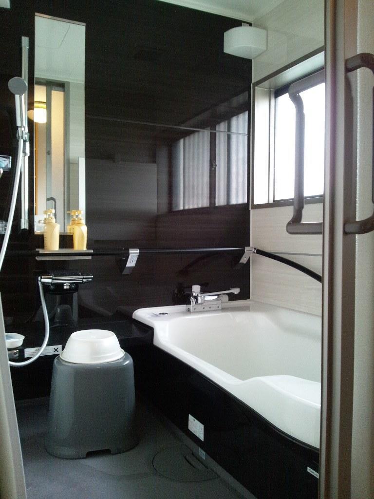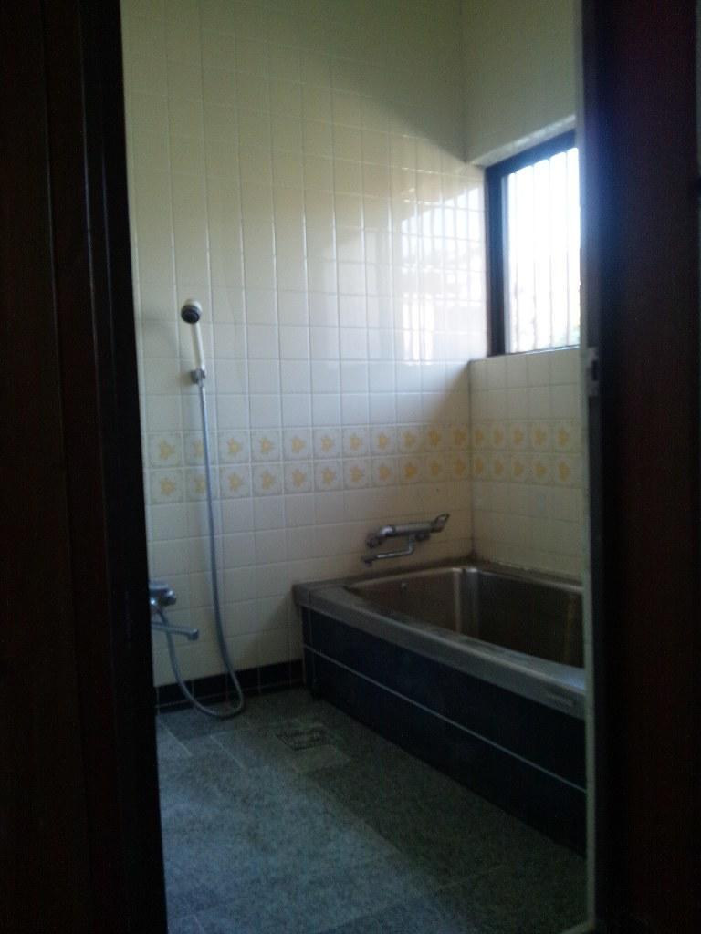 既存浴室は、床、壁タイル張り。天井モルタル仕上げです。 シックな色のかっこいいお風呂です。