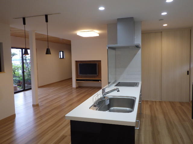 土間倉庫として使用していた建物を耐震補強をしながらリフォームを行いました。 大きい窓を配置し明るくて暖かいスペースを確保し、キッチンからは全体を見渡せるように設計しました。 各所に収納もたくさん設置しスッキリと収納出来るようにしました。