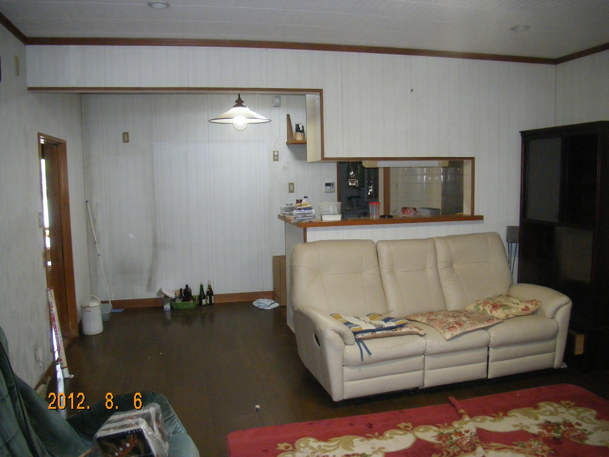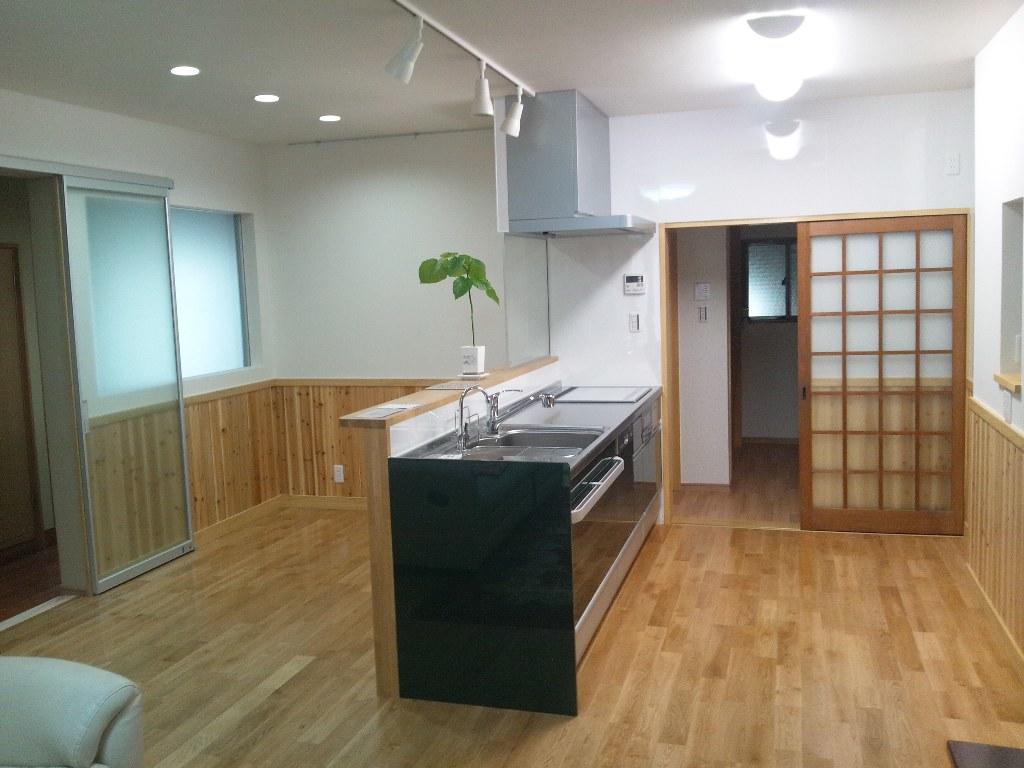 キッチンが孤立したLDKでした。 垂れ壁を撤去してLDKの境を無くす事により使い勝手と開放感が得られました。