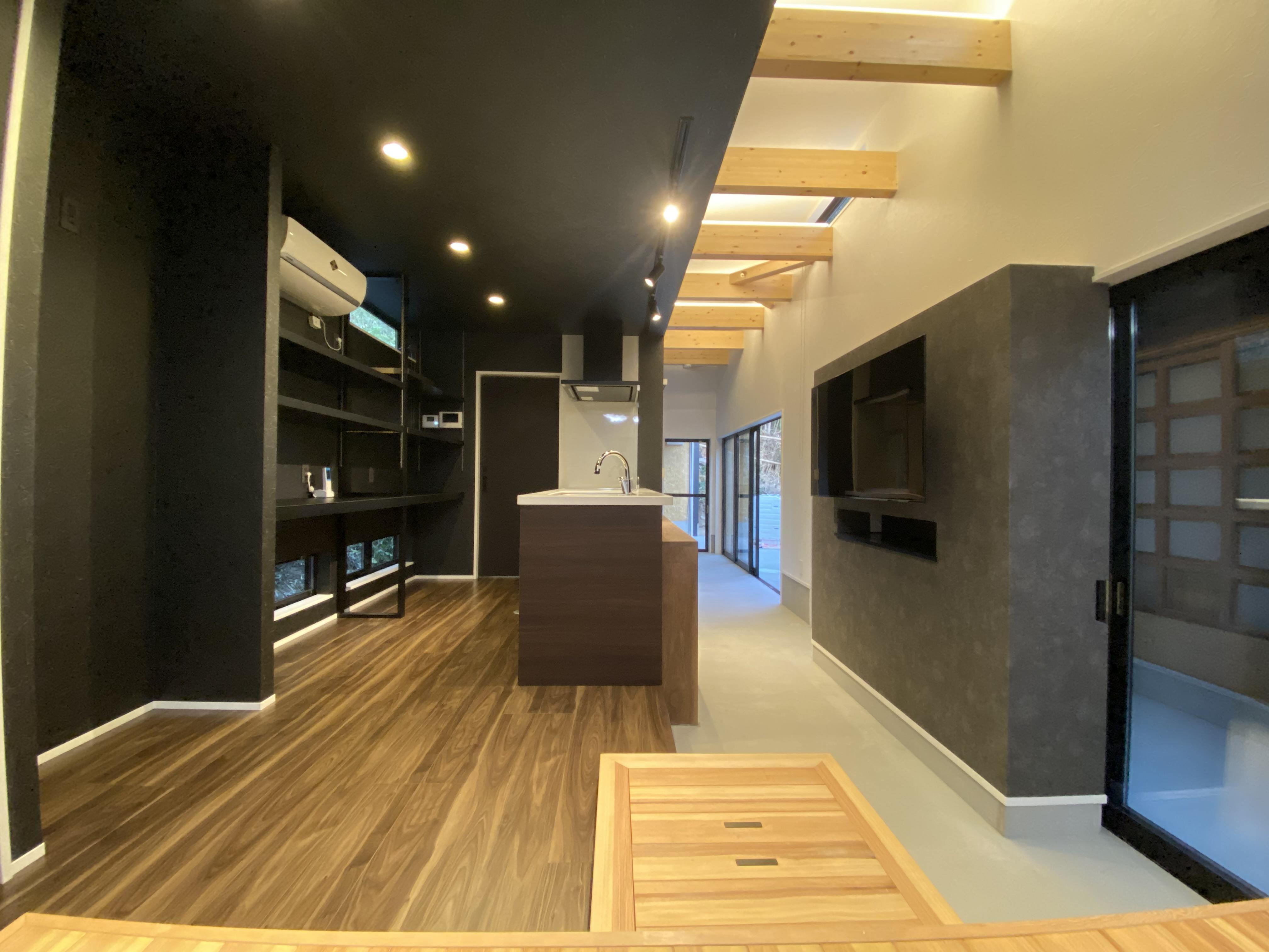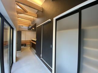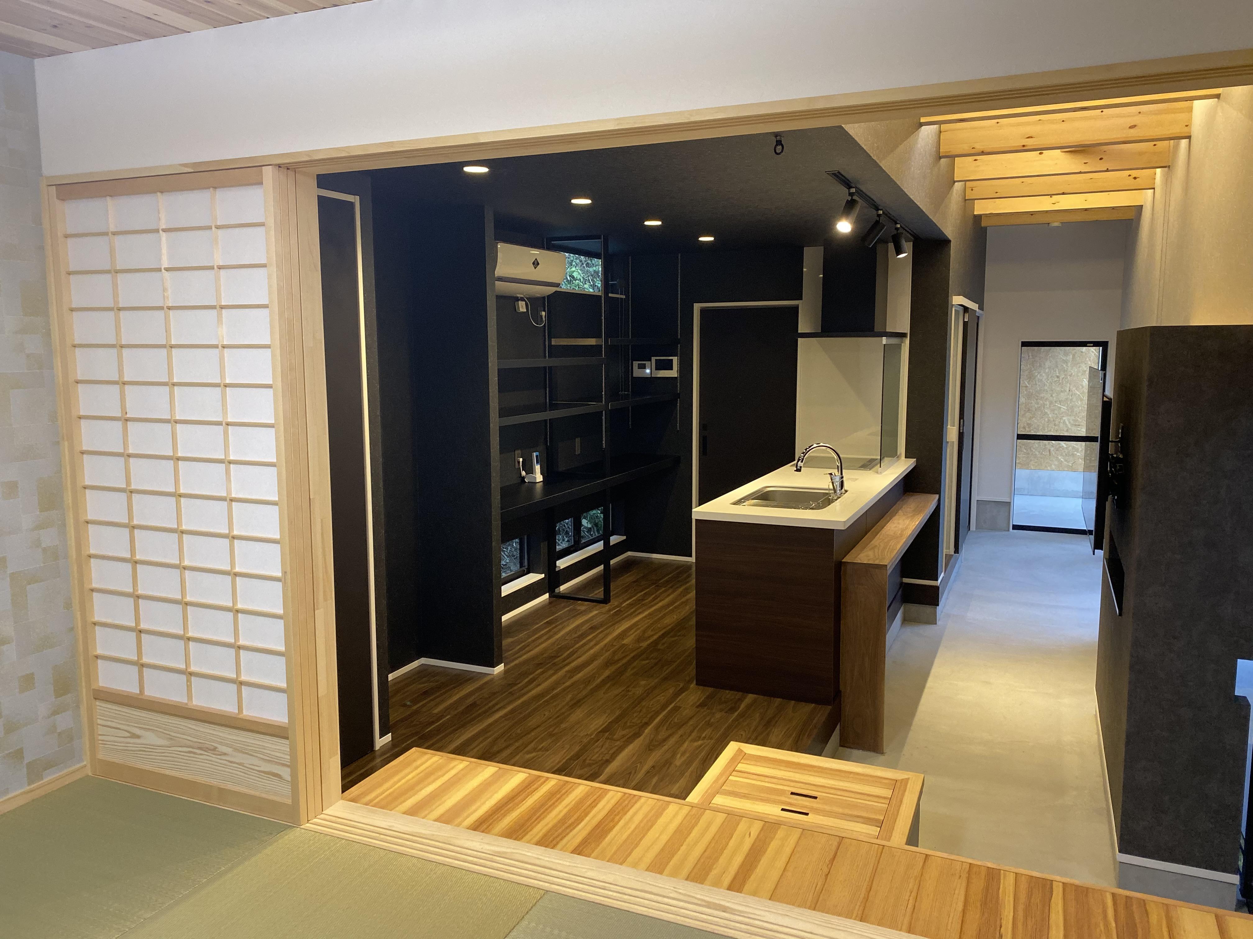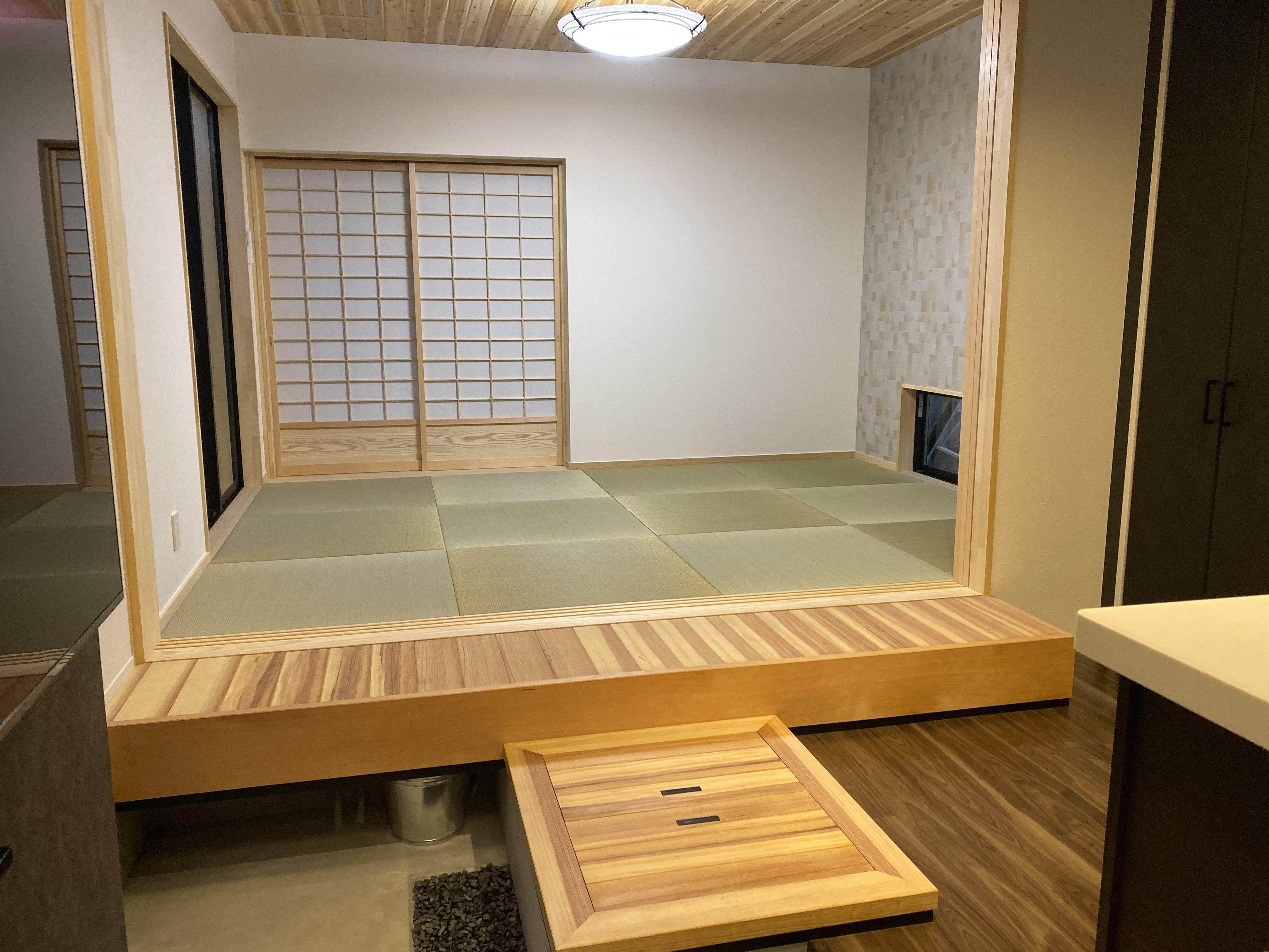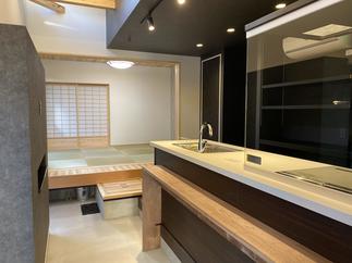 床下で塞がれていた井戸を生かした土間のある家にしたいという希望で井戸中心に設計をおこないました。 和室の障子をオープンにすることで大人数の来客時にも一つの空間として使用でき人の集まれる家になりました。