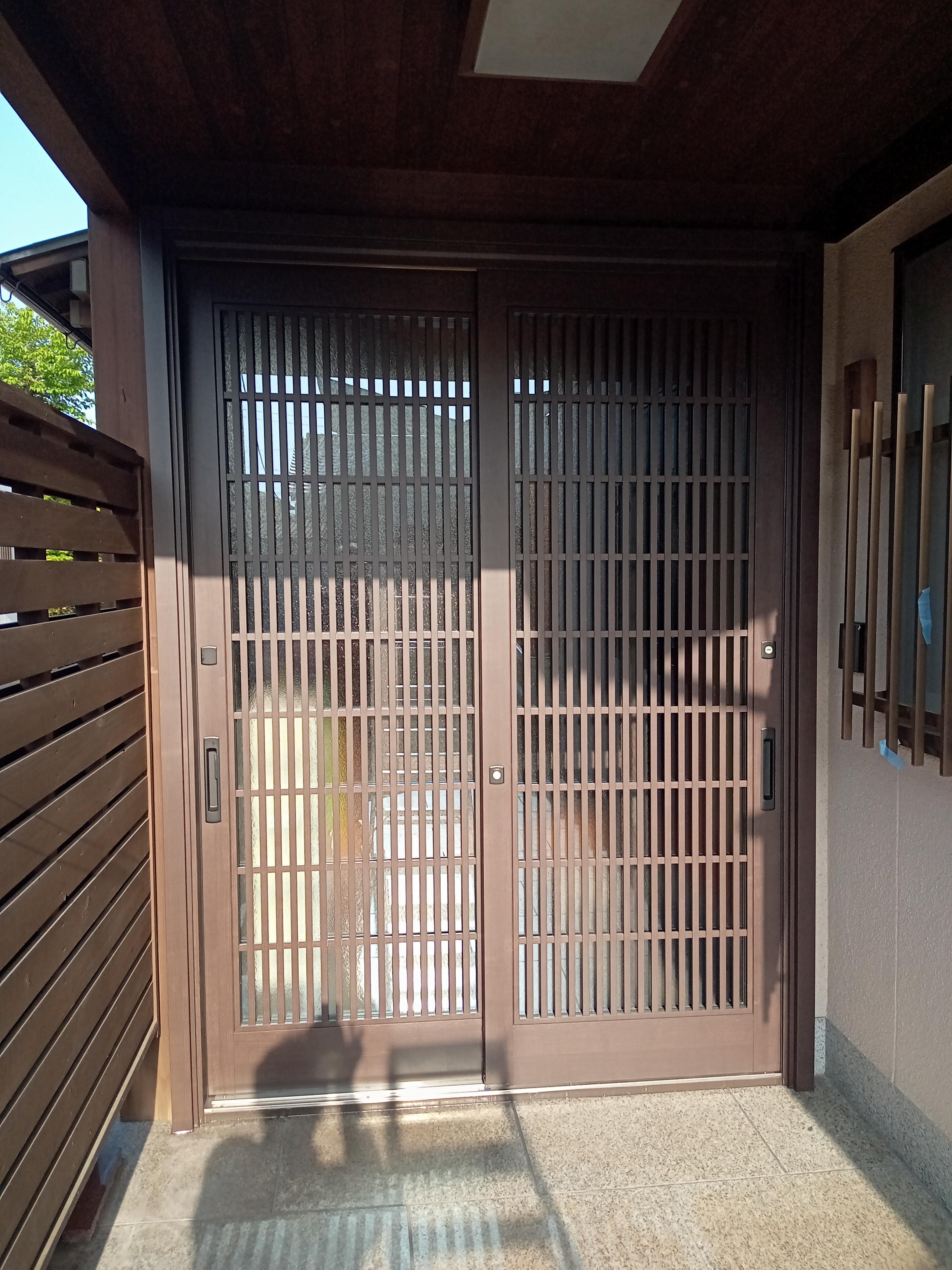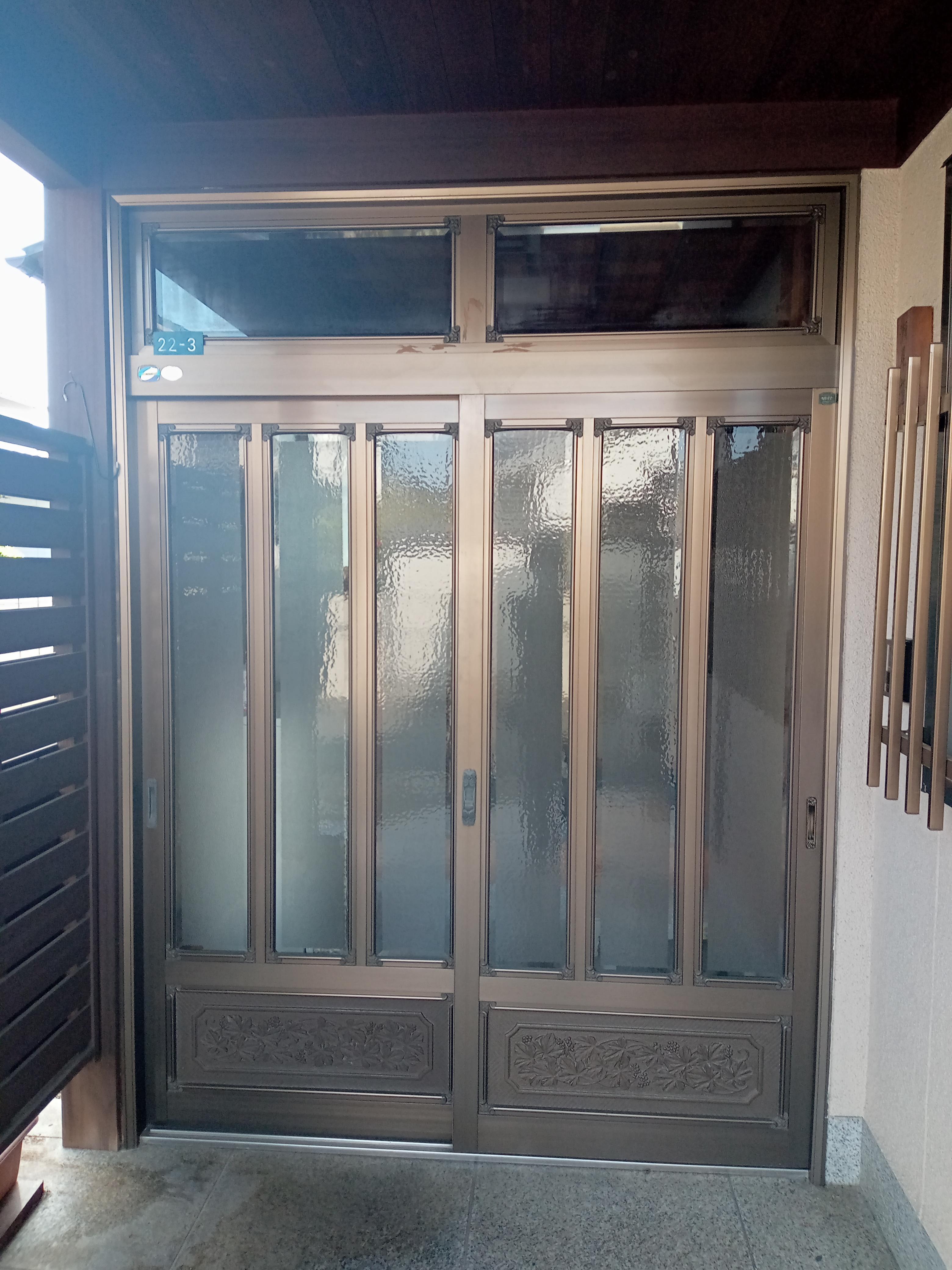 玄関1dayリフォーム 防犯の為、鍵取り換えの予定でしたが、打合せの中でサッシが古い為、断熱面も気になると言う事で、リシェントで1dayリフォームする事になりました。