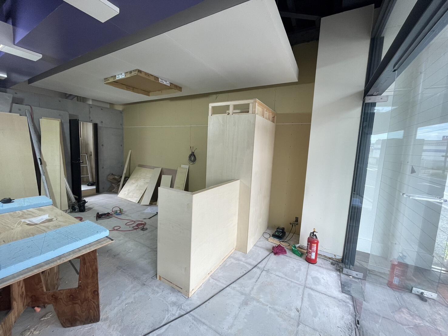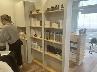 既存のコンクリートのグレーと木の組合せが、非常に相性がよく、植栽の自然色をより美しく引き立ててくれています。 入口と入口横の一面ガラスからの自然光と照明の切替えにより、カラーなど屋外での雰囲気が分かりやすくなっています。 オーナー様のこだわりのシャンプー台も最高です!(^^)!