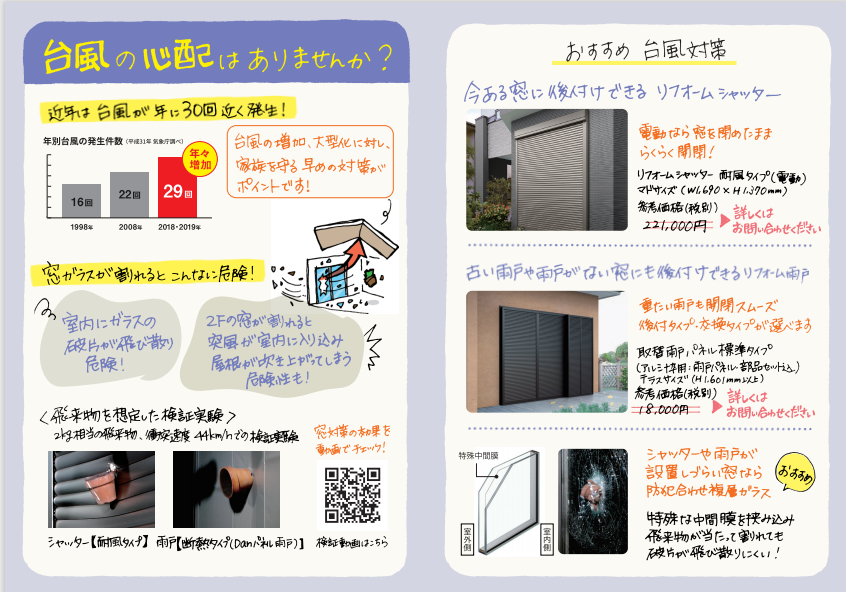 毎年必ず来る台風・暴風雨対策として窓にシャッターや雨戸を設置してみませんか?