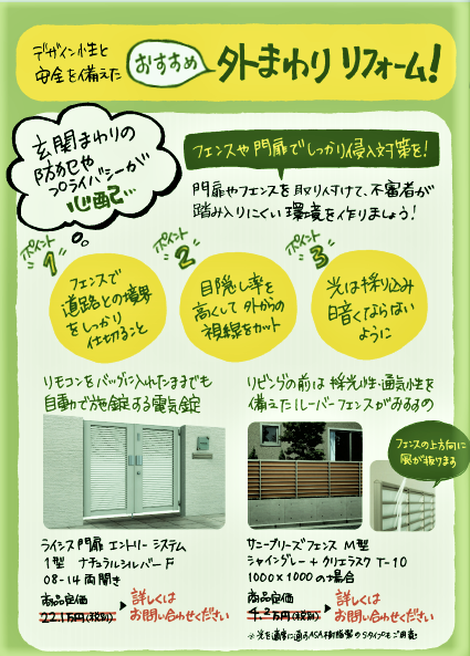 玄関まわりのリフォームに、門扉やフェンスを取り付けてみませんか?防犯対策やプライバシー対策にも!