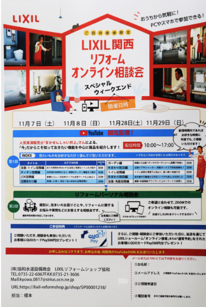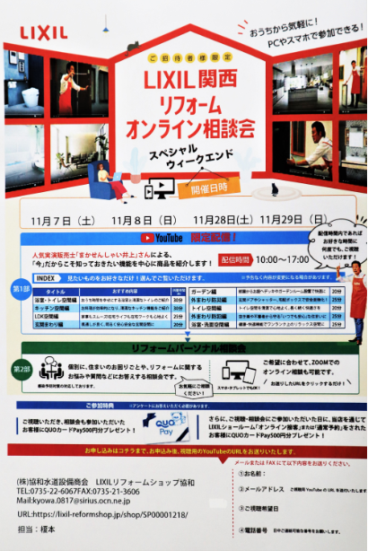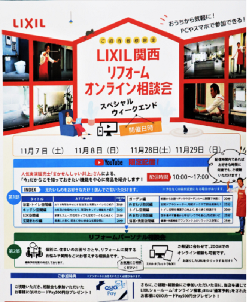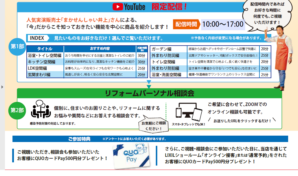 YouTube視聴後、リフォーム相談会にご参加いただきアンケートにご回答くださったお客様にQUOカードPay500円分プレゼン