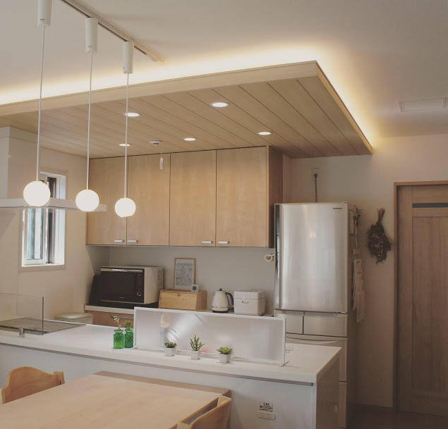 通常の天井部分と下がり天井部分の素材や色の対比が楽しめる点も、メリットの一つです。