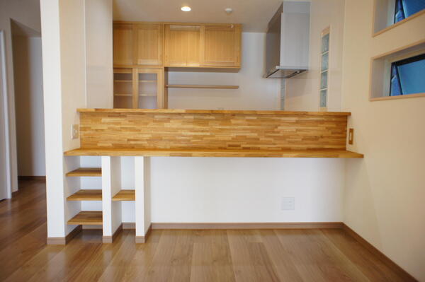 キッチンの腰壁に作ったニッチは、家族の目にも入りやすく、収納にもディスプレイにも便利なスペースです。ティッシュなどちょっとしたものをサッと取り出せる実用性はもちろん、季節の雑貨やお気に入りの小物を置けば、空間に温かみや個性がプラスできます。毎日目にする場所だから、自分らしくアレンジして楽しめるのも魅力です。