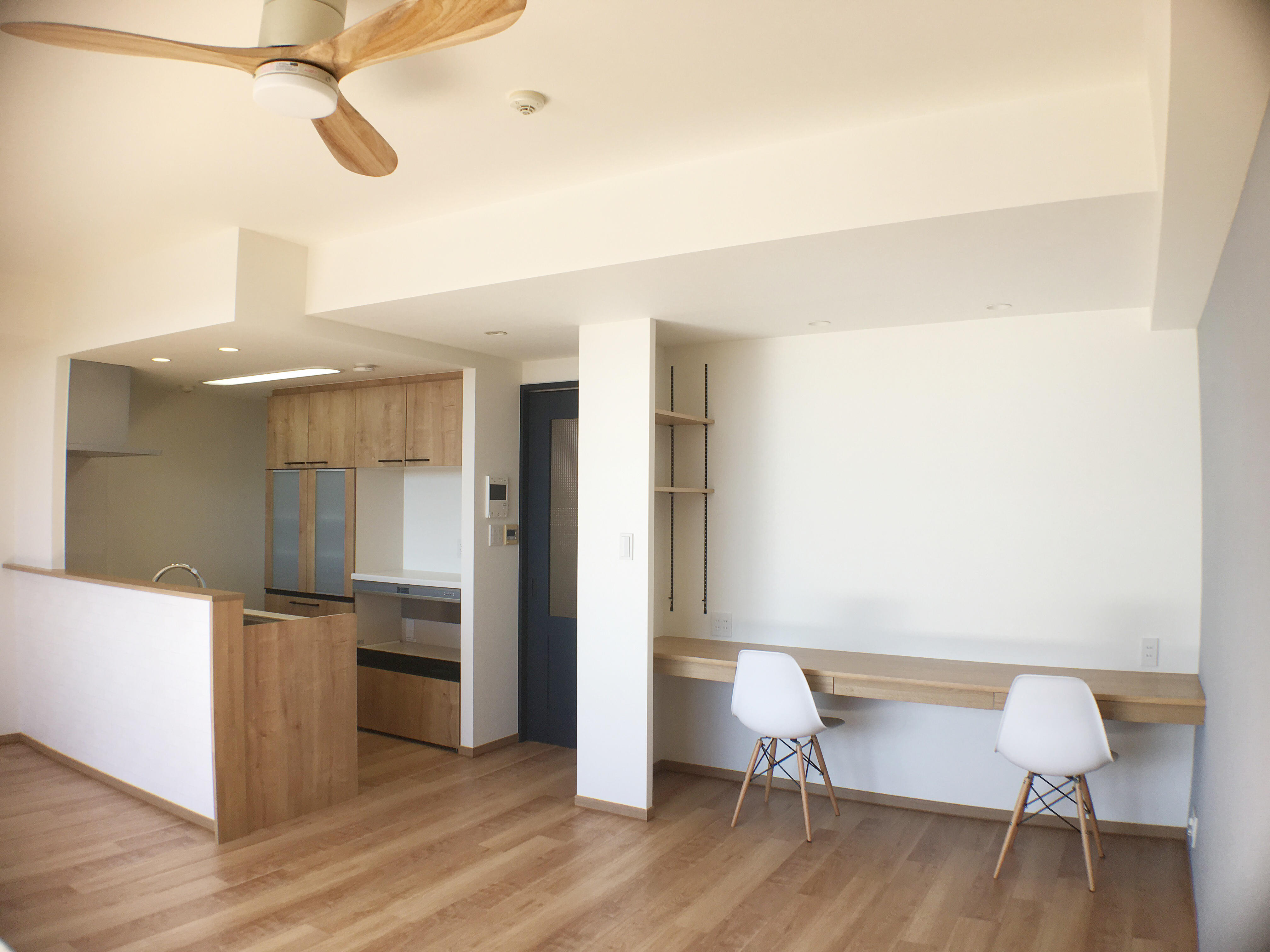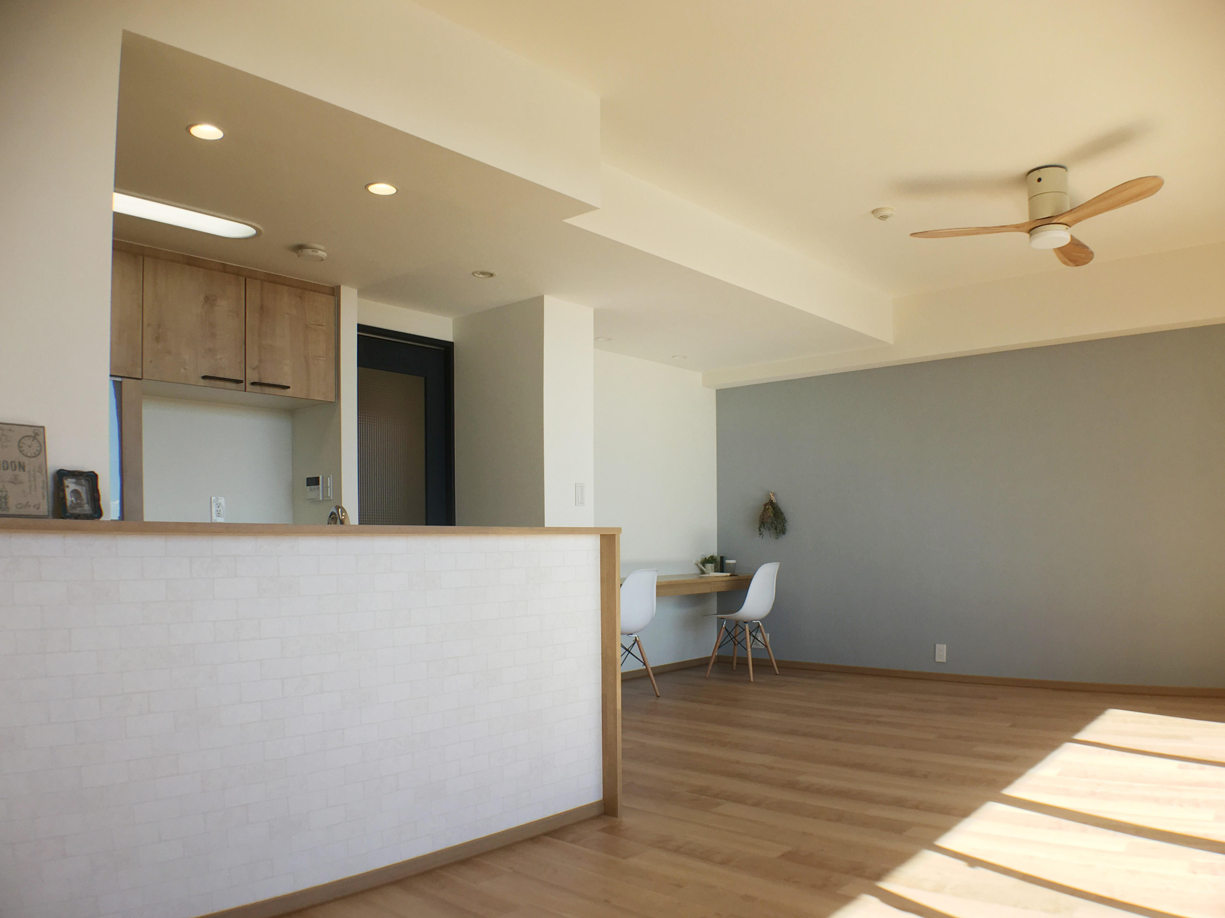 築16年の中古マンションを全面リフォームし北欧テイストのナチュラルなインテリアに。 リフォーム前は床や建具の色がやや暗く、格調高く重たい印象でしたが、お若いご家族様に合わせて明るくナチュラルな雰囲気になりました。