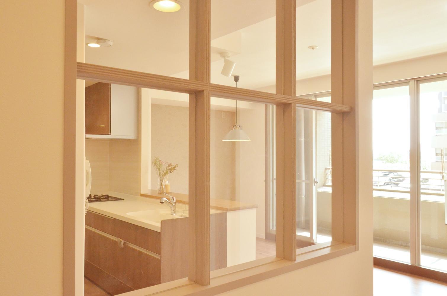 リビングと隣り合わせのタタミスペースは室内窓を施工し、机には無垢板を採用しました。お子様のお勉強スペースにピッタリです。室内窓を設けて視線が通ることにより、キッチンで料理をしていても、お子様の様子がわかります。