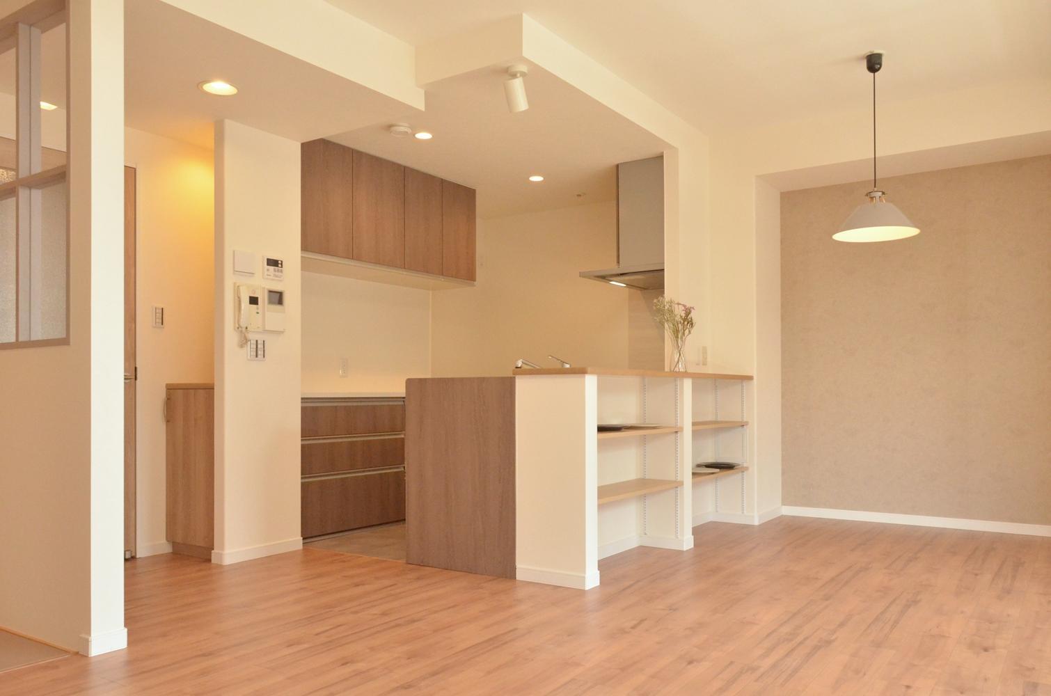 全体的に暖色系でまとめ、ぬくもりのある空間へ