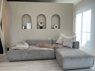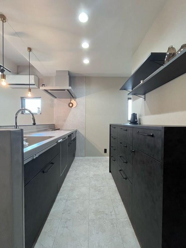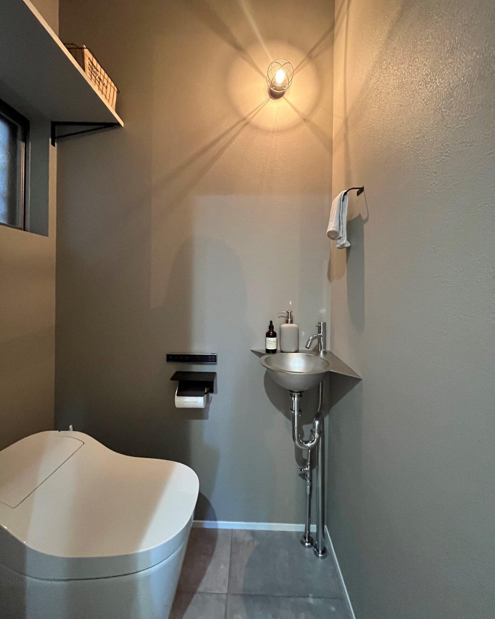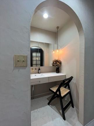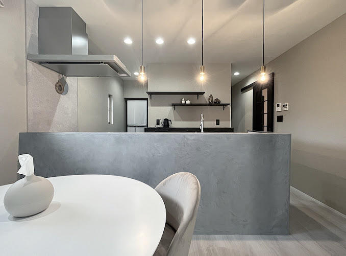 質感や器具にこだわり、オシャレで落ち着いた空間になりました。 モールテックスを使用した壁がポイント。