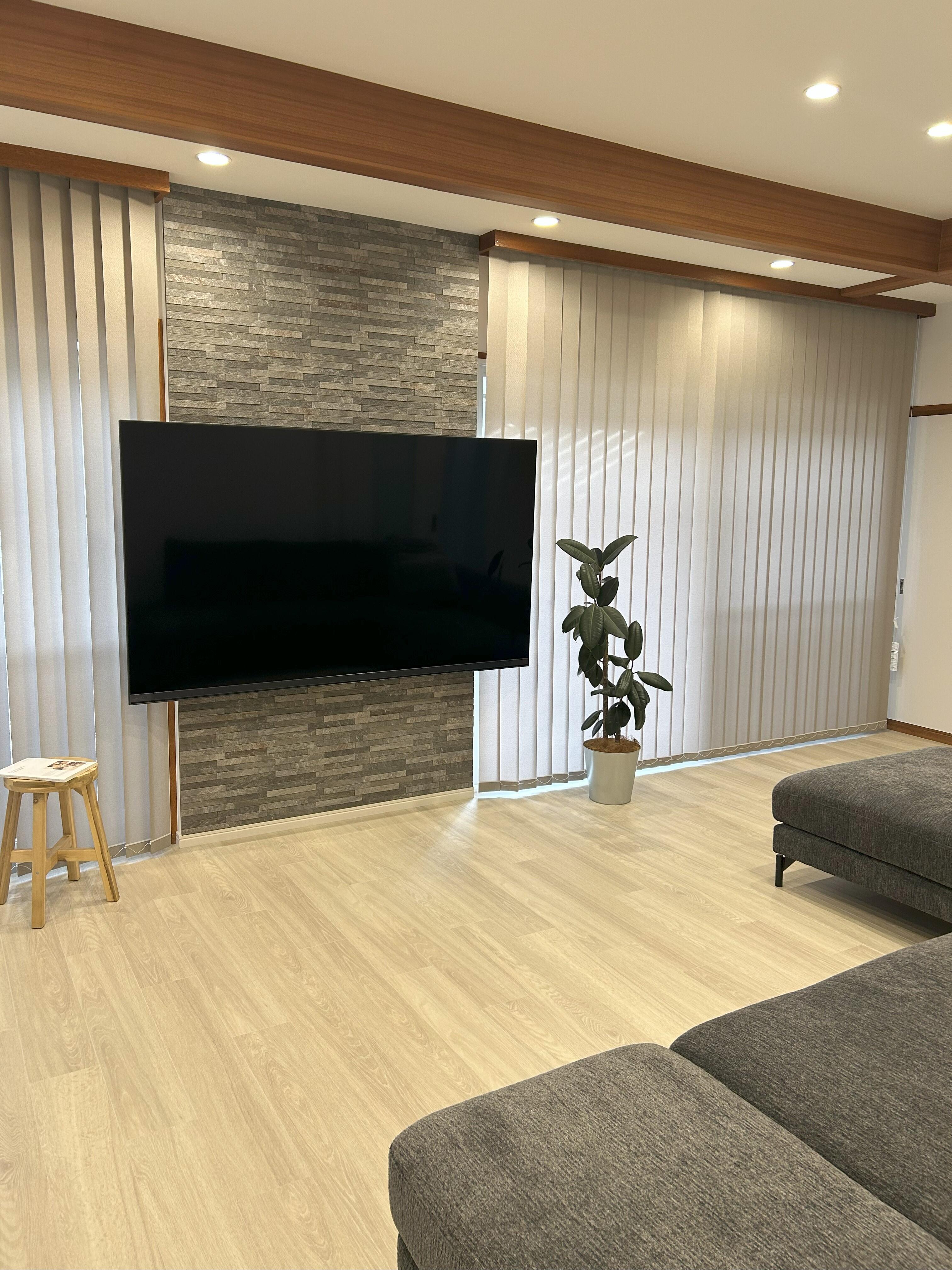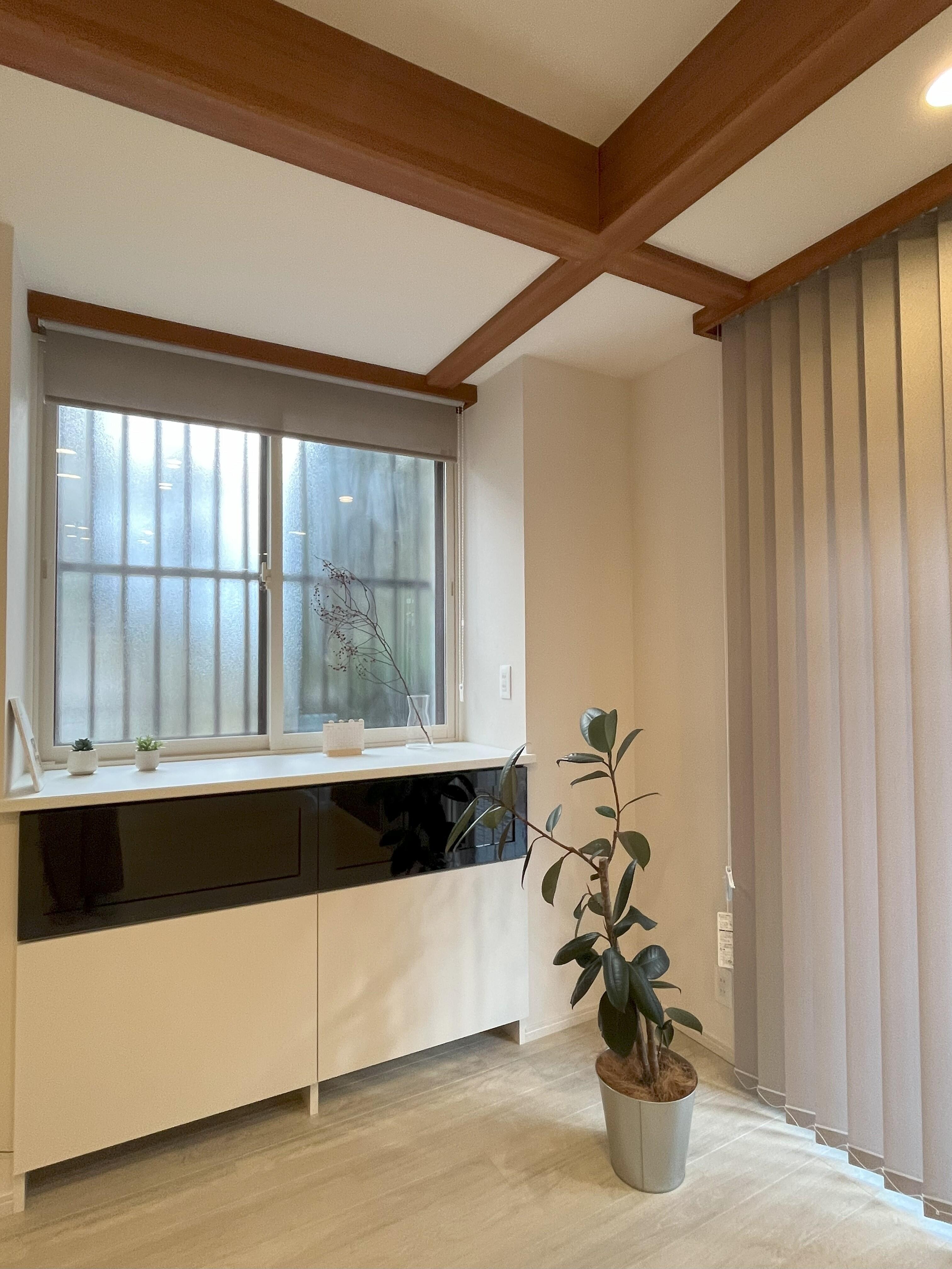 縦型ブラインドは、空間を縦方向に強調し、視覚的に天井が高く感じられる効果があり、部屋がさらに広く開放的に感じられます。