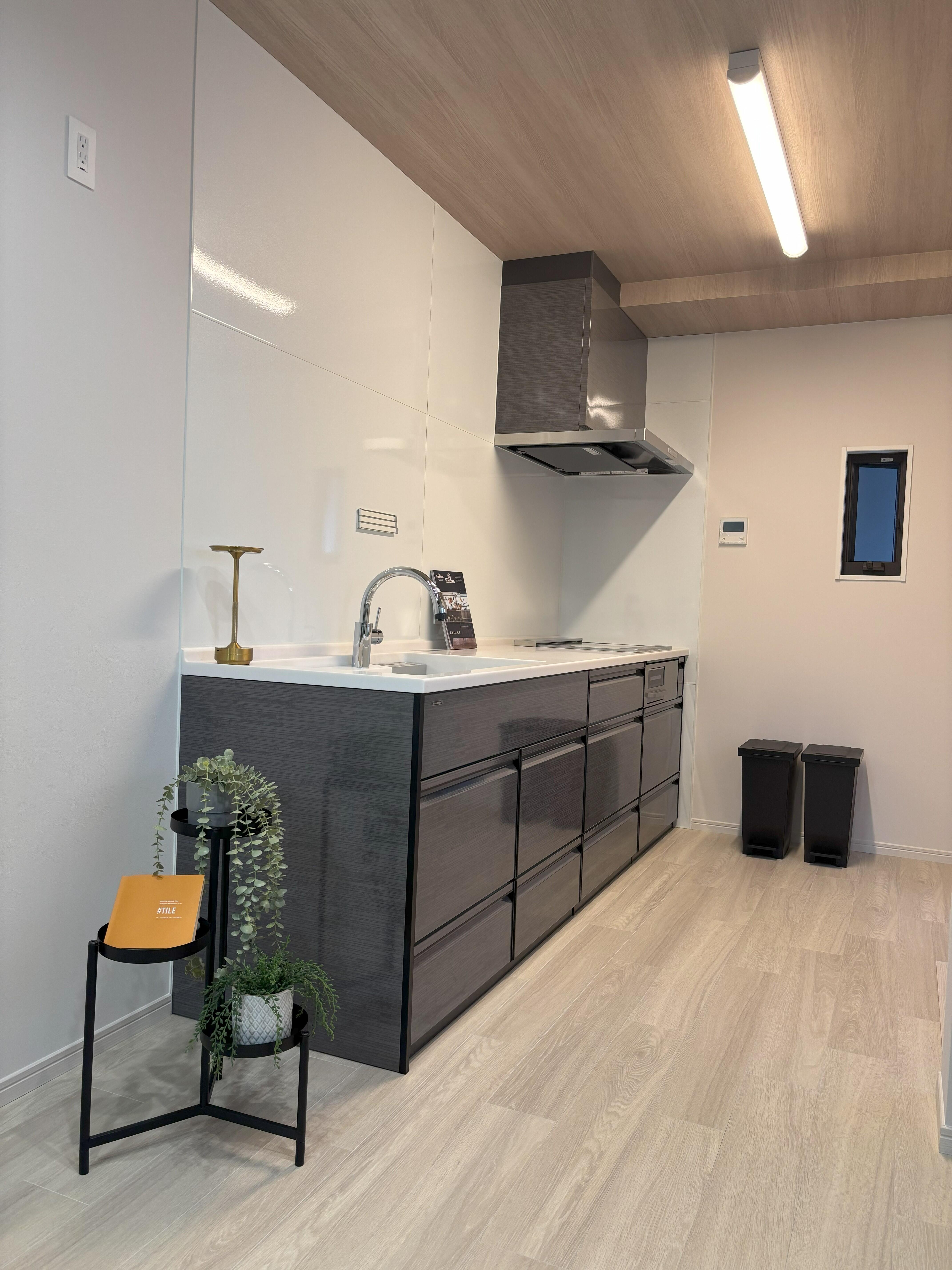 さらに、手洗いカウンターの上にはLIXILのタイルを施工。アクセントクロスとの相性を考えた色合いと質感が、空間全体に統一感と上質さをプラスしています。
