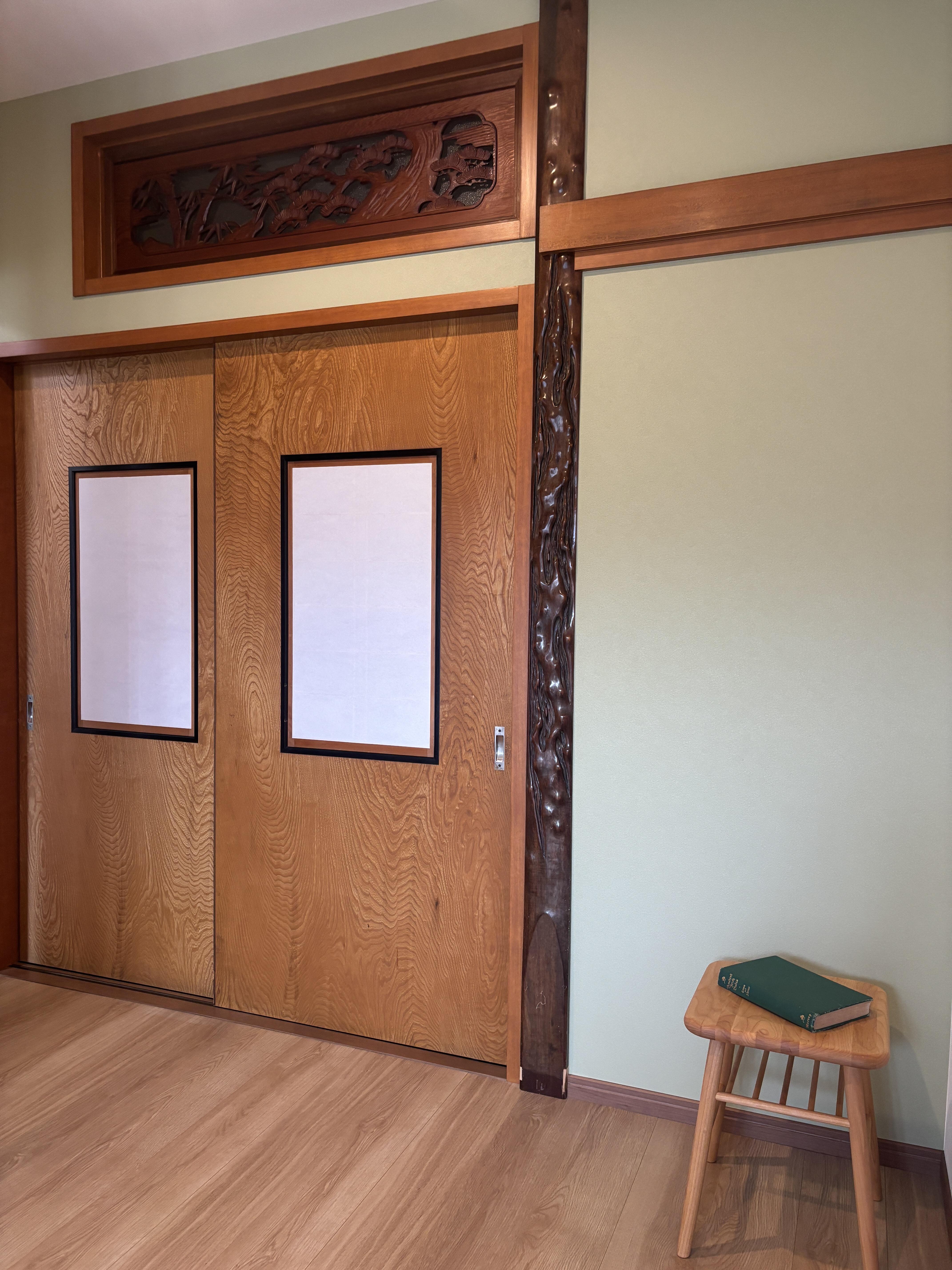 欄間や床柱、建具といったご両親の思い出が詰まった素材を再利用し、懐かしさを感じさせながらも新しい暮らしに馴染む空間へと仕上げました。 和の趣と洋の快適さが調和することで、心地よく、どこか懐かしい温もりが広がる住まいとなっています。 さらに、耐震工事を行うことでデザイン性だけでなく安全性も確保されました。